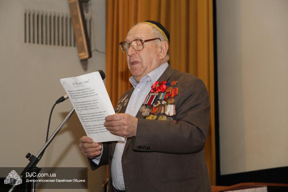 Это мероприятие было организовано в рамках сотрудничества Совета ветеранов Жовтневого района и Совета евреев-ветеранов при «Хеседе-Менахем». «Хотя 23 февраля больше не праздник с точки зрения государства, для нас, ветеранов, это особый день – день рождения армии, в которой мы не только служили, но и воевали, – сказал Соломон Флакс, председатель Совета евреев-ветеранов, – день рождения отменить нельзя, и мы собрались для того, чтобы в своем кругу отметить день рождения армии, которой мы отдали годы своей жизни, свою кровь, а многие и жизнь, в рядах которой мы освободили Европу от нацизма, а многие из нас защищали и освобождали Украину. Это была армия страны, которой больше нет, но это была армия, в которой были мы. Для нас это важно, это часть нашей истории, и мы никого ни к чему не призываем, мы просто поздравили друг друга с высоко поднятой головой. Мы исполнили свой долг, и исполнили его достойно, и мне приятно, когда молодежь подходила ко мне в этот день и говорила: «С вашим праздником, дедушка». Именно так – это наш праздник, и мы будем его отмечать».