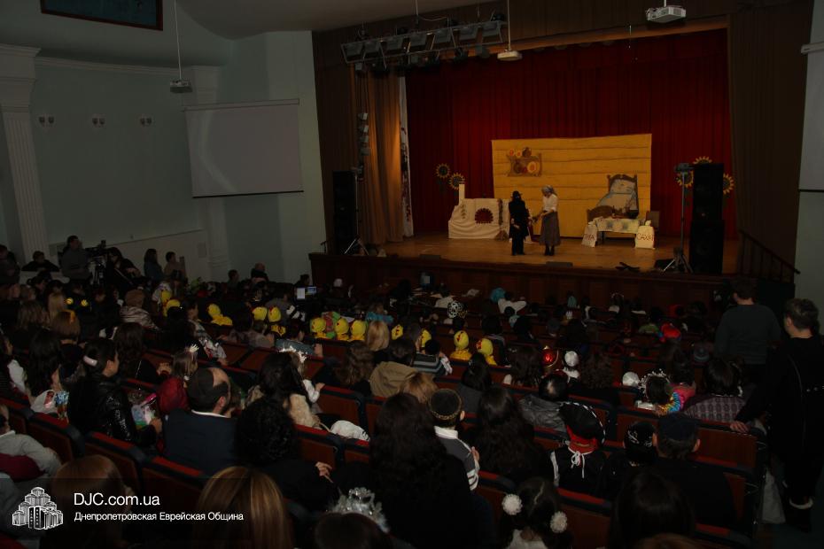 Затем к празднику присоединились ученики младшей школы, и все прошли в зал, был показан фрагмент видеообращения Седьмого Любавического Ребе Менахема-Мендела Шнеерсона, далее собравшихся с праздником поздравила ребецн Хана Каминецкая, а лишь затем состоялся спектакль, подготовленный воспитателями и сотрудниками «Бейт Циндлихт».