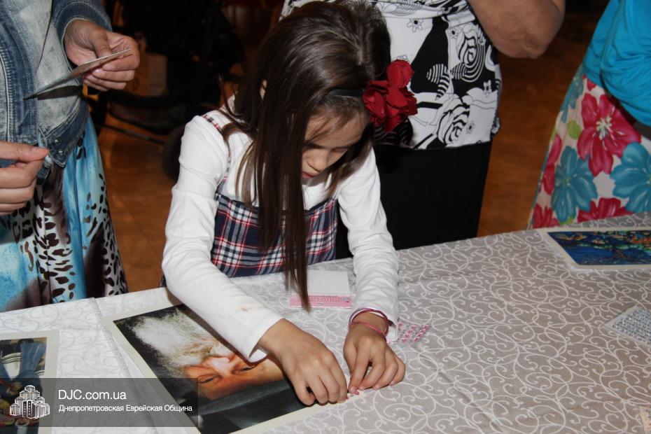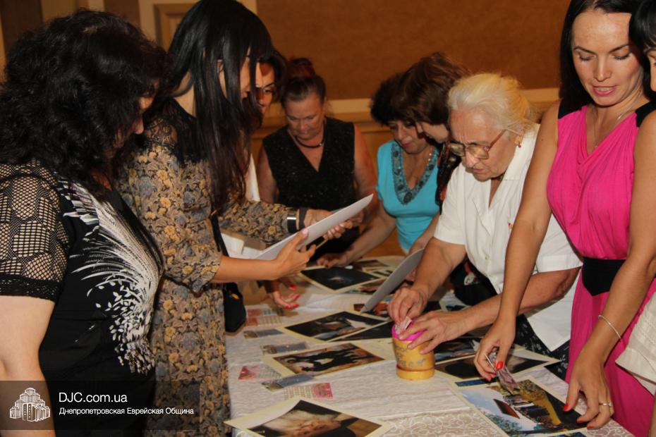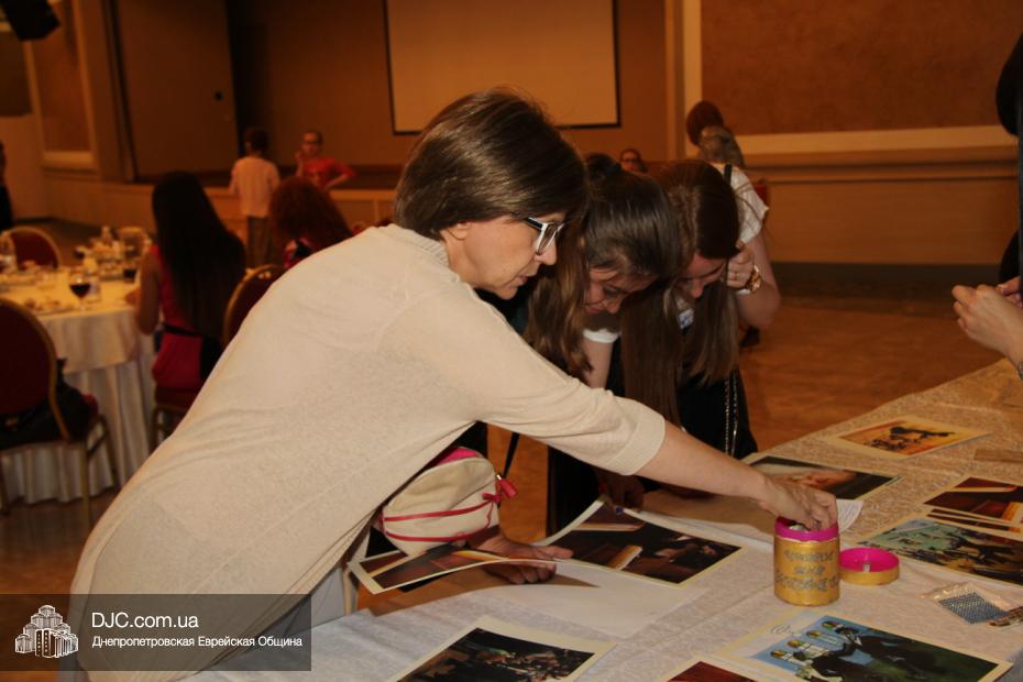 Следующей слово взяла Ципора Нахшон. Она предложила поднять лехаим за 15 ава, непременно произнеся, хором со всем залом, благословение на вино. После чего предложила всем женщинам принять участие в оригинальном мастер-классе, во время которого они смогли празднично украсить портреты Главы нашего поколения, Седьмого Любавического Ребе Менахема-Мендела Шнеерсона, а также разнообразные картины, изображающие еврейскую жизнь.