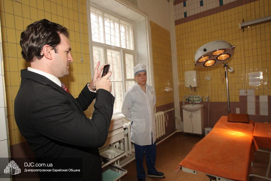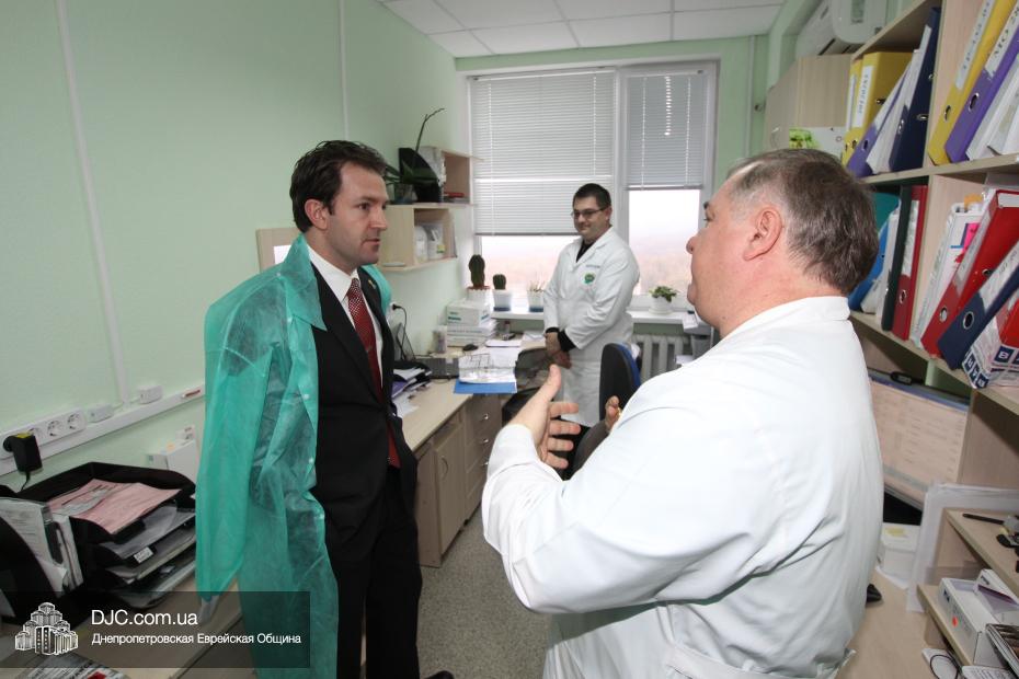 Для того, чтобы составить себе полное и адекватное представлением о тех возможностях, которыми располагают медицинские учреждения в Днепропетровске, об их наиболее насущных потребностях, Джеймс Филлипс посетил 16-ю больницу, где познакомился с работой отделения ургентной травматологии и центра лечения политравм и с теми методами, которые там применяются для оказания медицинской помощи раненным в ходе боевых действий. Также Джеймс Филлипс посетил ожоговый центр, расположенный во 2-й городской больнице (имеющей историческое название – «Рабочая») и 4-ю больницу, что на жилмассиве Западный. Здесь, кроме знакомства с особенностями оказания медицинской помощи и выяснения наиболее перспективных направлений оказания максимально действенной и эффективной гуманитарной помощи, Джеймс Филлипс прочитал лекцию об особенностях применения ургентной медицинской помощи в случае травм и о методах, которыми можно предотвратить кровопотери.