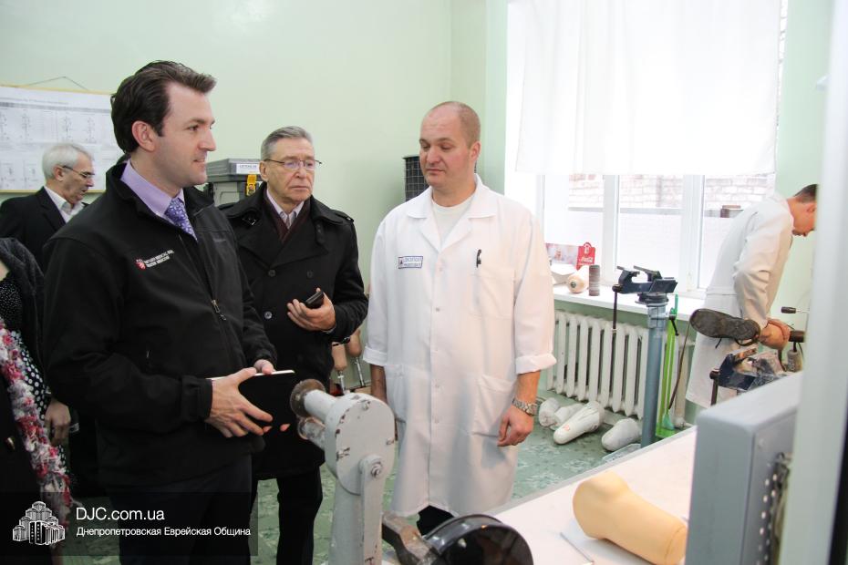 С возможностями, которые есть в Днепропетровске для решения проблем реабилитации пациентов с утратами конечностей и возвращением их к полноценной жизни, Джеймс Филлипс  знакомился на протезно-ортопедическом предприятии, где он увидел успехи днепропетровских специалистов при протезировании нижних конечностей и узнал о том, почему протезирование верхних конечностей в Украине пока не может осуществляться на должном уровне.