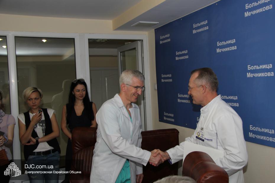Днепропетровская еврейская община и наш сайт от всего сердца благодарят профессора Романа Гайду и все тех, кто сделал возможным его визит, за их усилия спасти жизнь и здоровье защитникам Украины и мирным гражданам, пострадавшим от вооруженной агрессии против нашей страны. То, что благодаря программе сотрудничества еврейских общин будут спасены многие жизни, будет восстановлено здоровье многих людей, станет еще одной вехой, еще одним значительным успехом в реализации «Кегила-проджект», как модели сотрудничества этнических общин на благо всего общества и во имя людей.