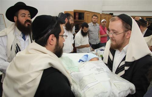 Почетную роль сидящего сандака (человека, держащего младенца на руках во время обрезания) выполнил раввин Мойше Фурлендер, а стоящим сандаком (человеком, держащим ребенка во время провозглашения его имени) был отец малыша – раввин Элиша Барам.