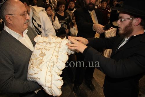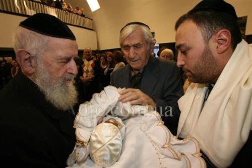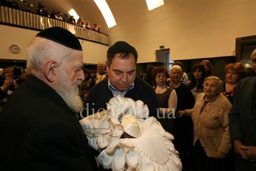 Сандаком – человеком, держащим младенца на руках во время выполнения обряда, стал Главный раввин Днепропетровска и Днепропетровского региона Шмуэль Каминецкий.