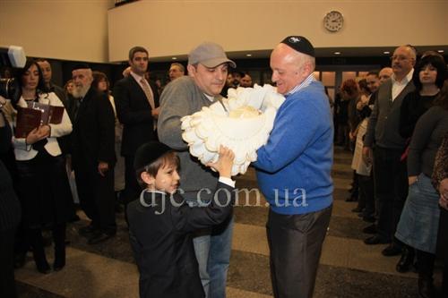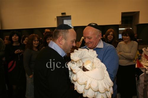 В большом молитвенном зале Центральной синагоги «Золотая Роза» прошла церемония вступления в завет Авраама (обрезания) для сына Реувена и Голды Рувинских, который родился в последний, восьмой, день праздника Ханука. Церемония брит-милы проводилась, как и полагается, на 8 день после рождения.