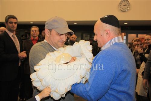 Возле кресла пророка Элиягу ребенка приняли на руки его прадедушки – Марк Давыдович Курдовер и Григорий Натанович Король. Из их рук ребенка принял член Попечительского Совета Днепропетровской еврейской общины Юрий Михайлович Константиновский, на которого была возложена почетная миссия — возложить ребенка на кресло пророка Элиягу. Затем ребенка с кресла принял Юрий Хмара и передал отцу, на руках которого присутствовавший в синагоге коэн, прямой потомок первосвященников Иерусалимского Храма, благословил дитя благословением коэнов.