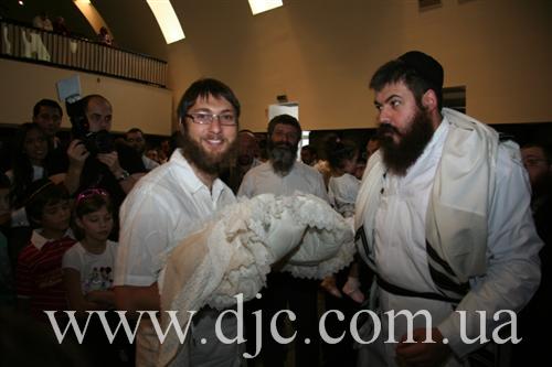 В большом молитвенном зале Центральной синагоги «Золотая Роза» прошла церемония вступления в завет Авраама (обрезания) для сына вице-президента Благотворительного Фонда «Шиурей Тора» Дана Макогона и его супруги Рады. Церемония проводилась, как и положено по традиции, на 8 день после рождения малыша.