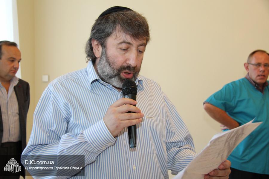 Письмо-благословение Ребе прочел член Попечительского Совета Днепропетровской еврейской общины, Председатель Совета Федерации еврейских общин Украины и президент Международного гуманитарно-педагогического института «Бейт Хана» раввин Меир Стамблер, а его перевод на русский язык – член Попечительского Совета Днепропетровской еврейской общины Менахем-Мендел Жак.