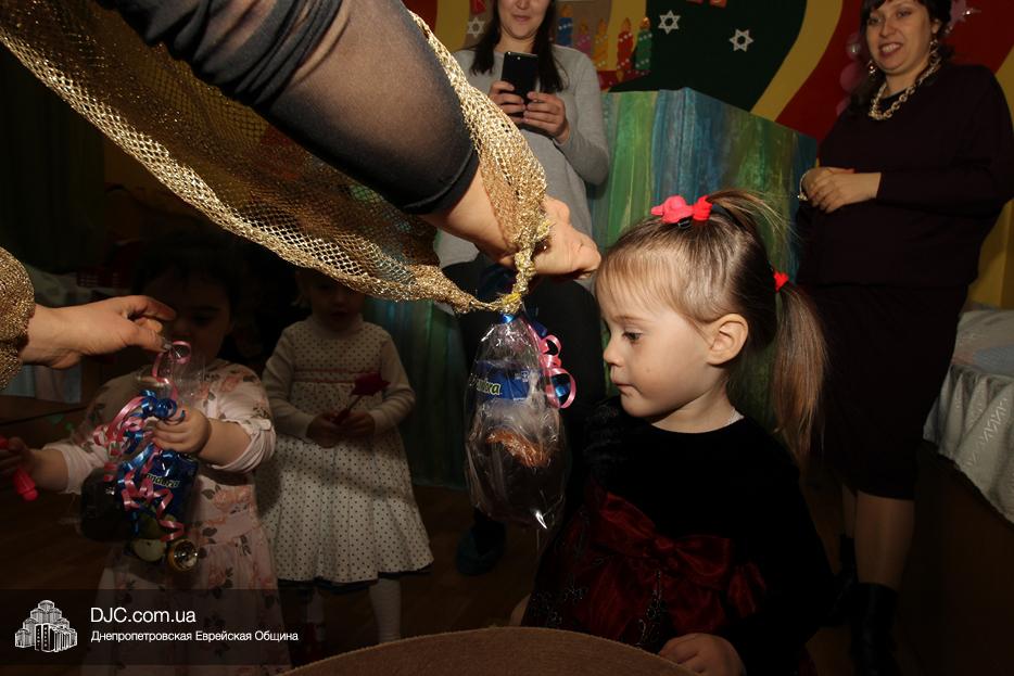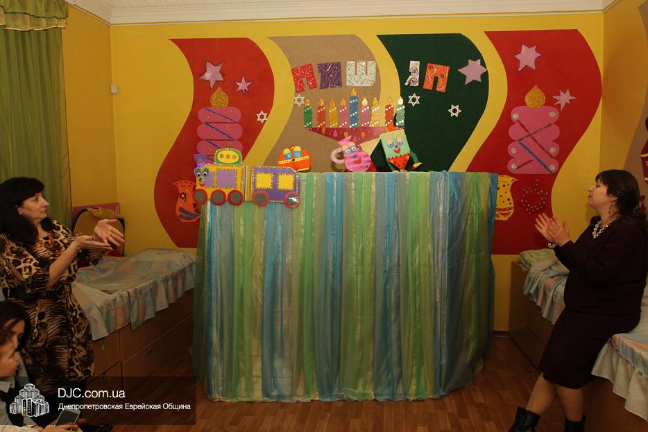 Как всегда, перед началом праздника гостей и малышей поздравили с чудесным праздником Хануки заведующая ясельками Алла Шурпинова и руководитель программ еврейского компонента Двора Фурлендер, а затем маленьких зрителей и их родителей приветствовали Ханукия, Суфганийотик и другие главные герои праздничного кукольного спектакля, которые вместе с малышами и пели ханукальные песни, и танцевали.