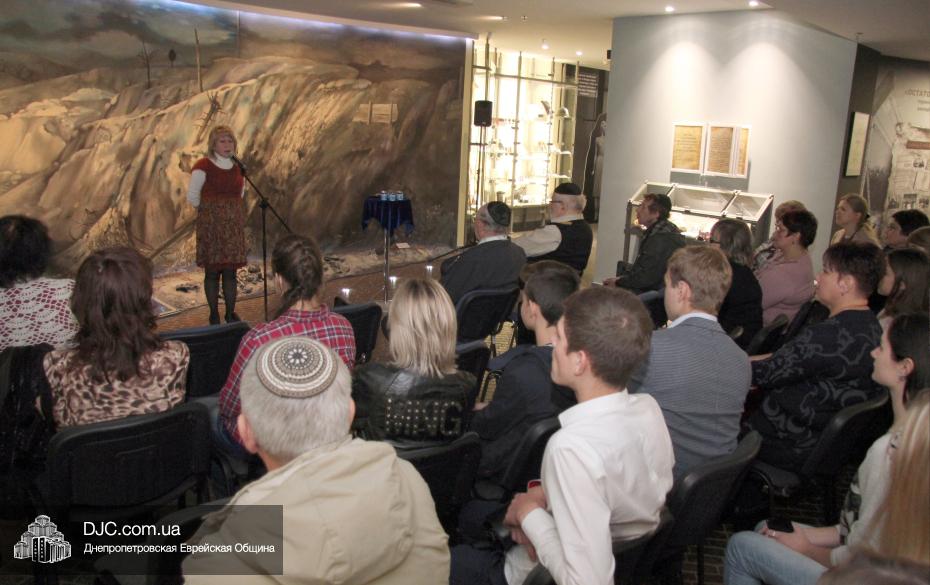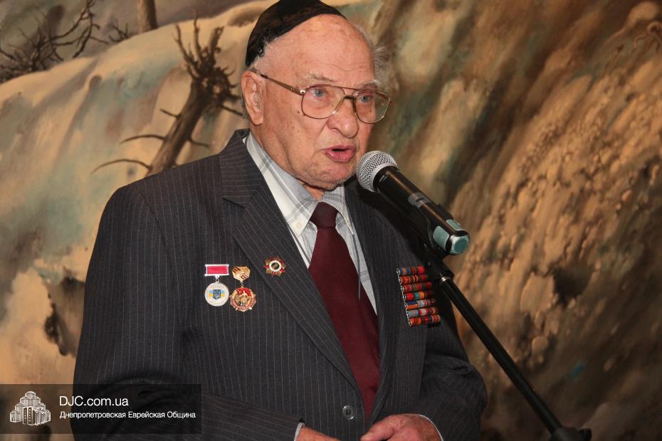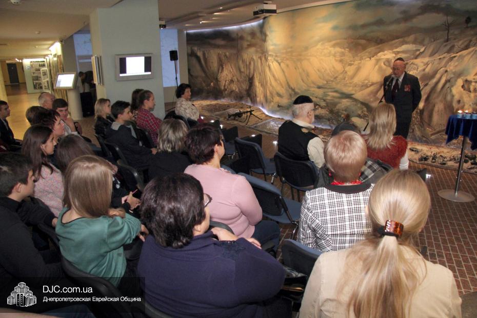 Перед собравшимися выступил председатель Совета евреев-ветеранов Соломон Киселевич Флакс, который рассказал о судьбе  своей семьи в годы Второй Мировой войны, а также общественный деятель, журналист газеты «Шабат Шалом» Эстер Тахтерина.