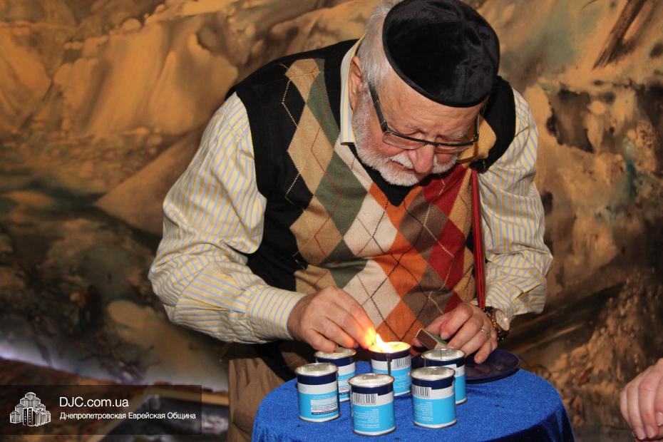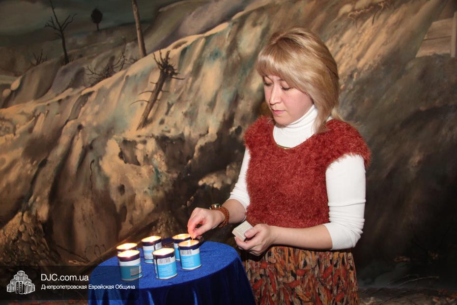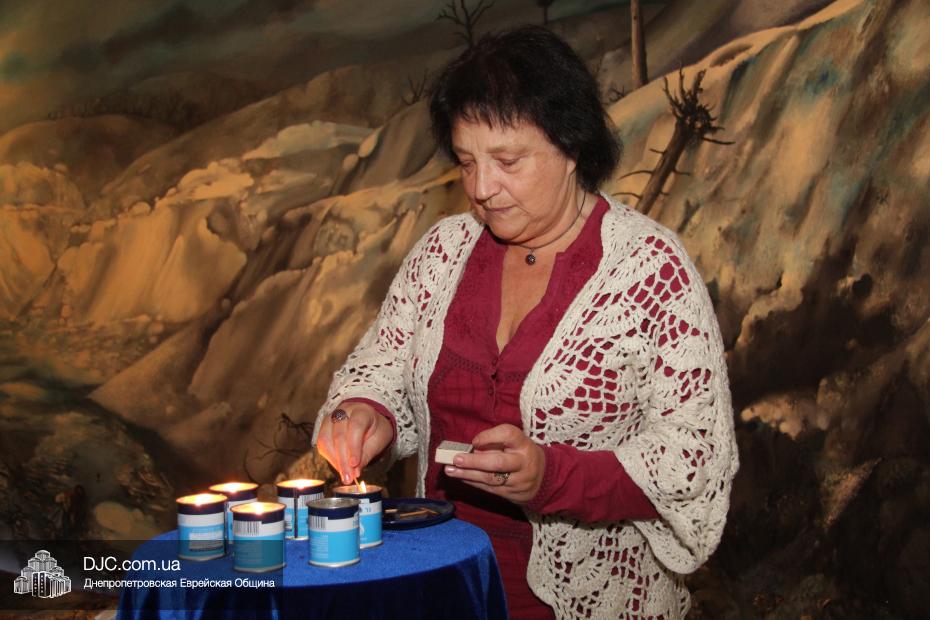 Выступающие, после своей речи, зажигали Свечу Памяти – «нер нешама», так, чтобы в конце церемонии перед полотном, изображающим панораму Бабьего Яра, горело шесть свечей, символизирующих память о безвинно погибших в годы Второй Мировой войны шести миллионах евреев Европы.