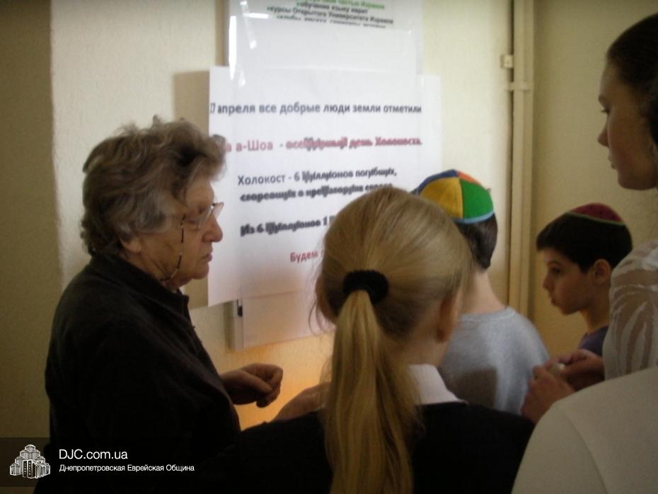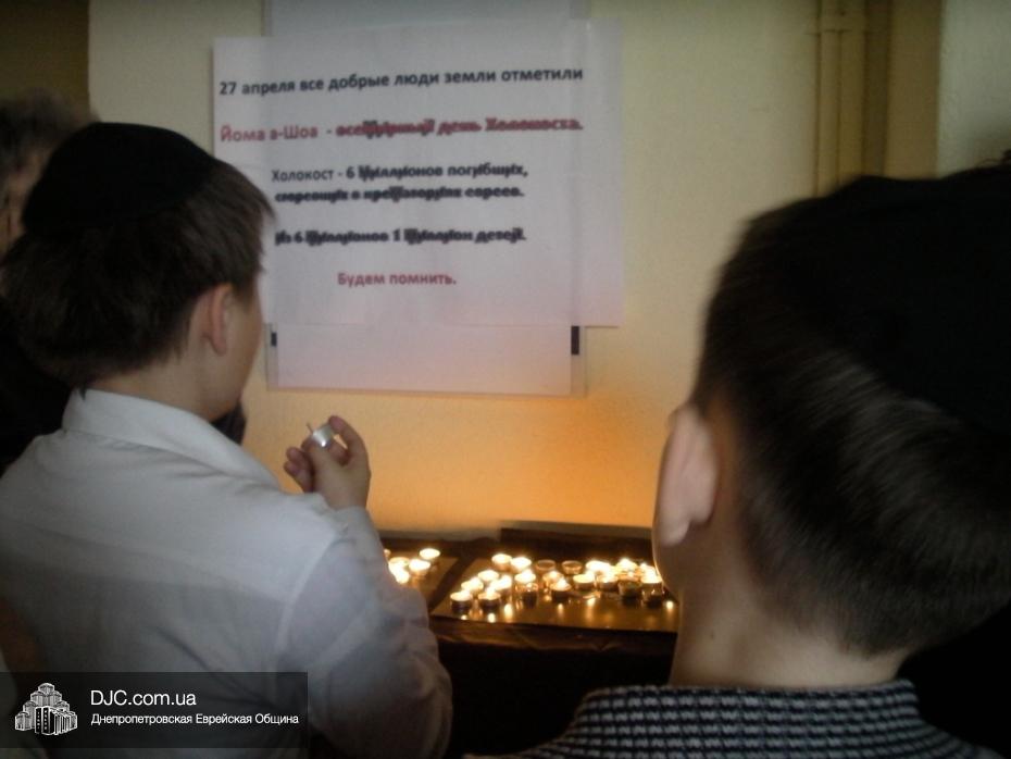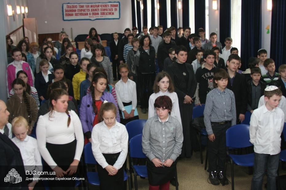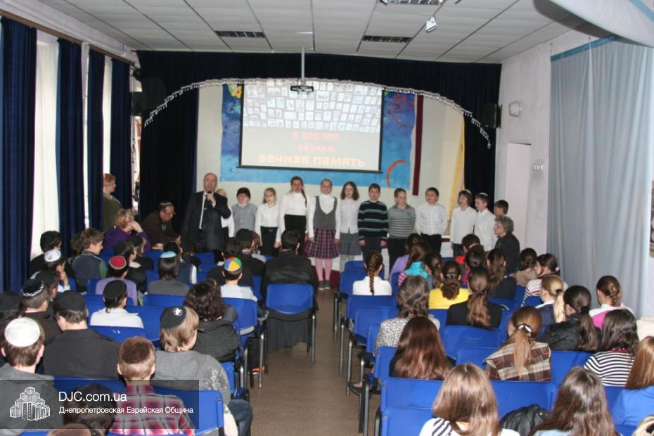В Йом А Шоа – День катастрофы и героизма европейского еврейства – в еврейской школе Днепропетровска «Ор Авнер Хабад-Любавич» им. Леви-Ицхака Шнеерсона № 144 прошла церемония памяти шести миллионов безвинных жертв Холокоста. Церемония прошла в актовом зале школы, под руководством заместителя директора по воспитательной работе Татьяны Хавкиной, и в ней приняли участие ученики 5-11 классов.