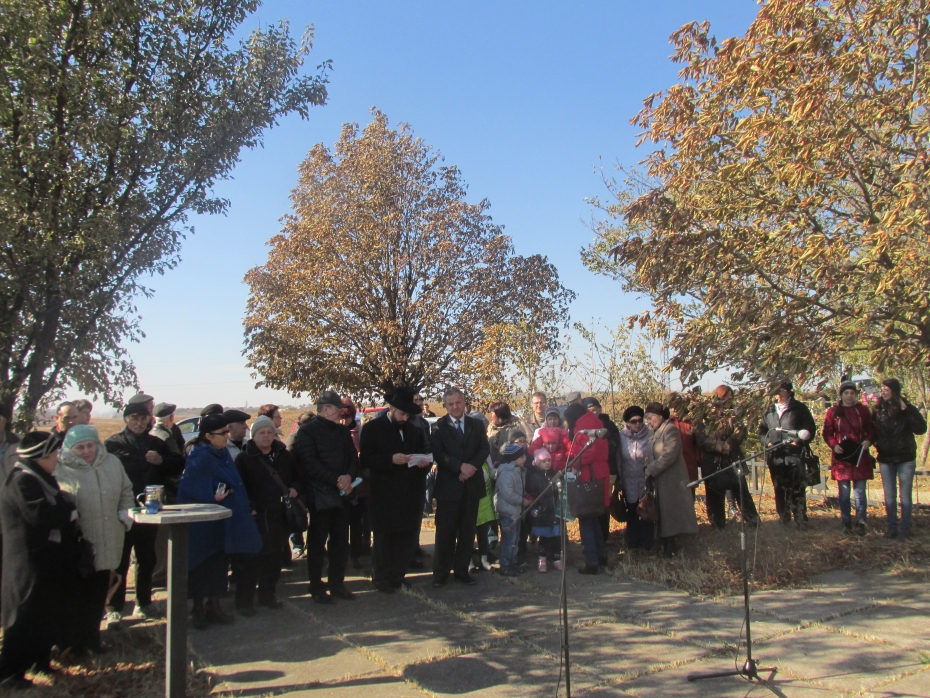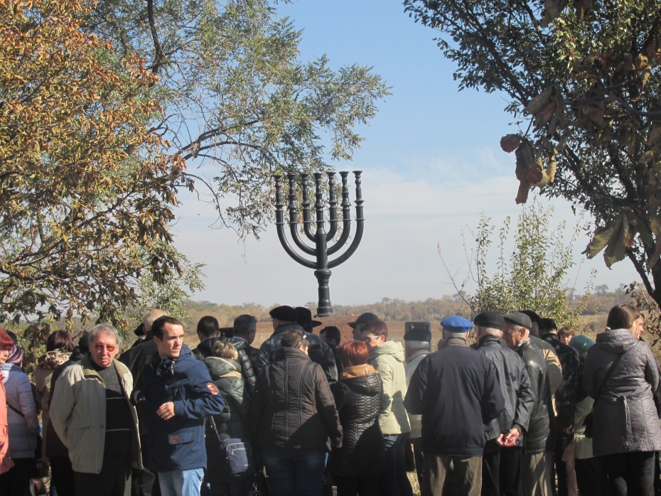 Следующее скорбное место – окраина поселка Агробаза, под Мариуполем. Здесь осенью 1941 года были противотанковые рвы, которые не смогли остановить нацистские танки, и которые стали братской могилой для 16 000 безвинных жертв Холокоста в Мариуполе. Большинство из расстрелянных здесь были стариками, женщинами и детьми, и долгие годы Советская власть препятствовала проведению здесь церемонии памяти, и лишь с обретением Украины независимости на месте массового уничтожения людей был возведен мемориальный знак с изображением Меноры, а община получила возможность проводить траурные митинги.
