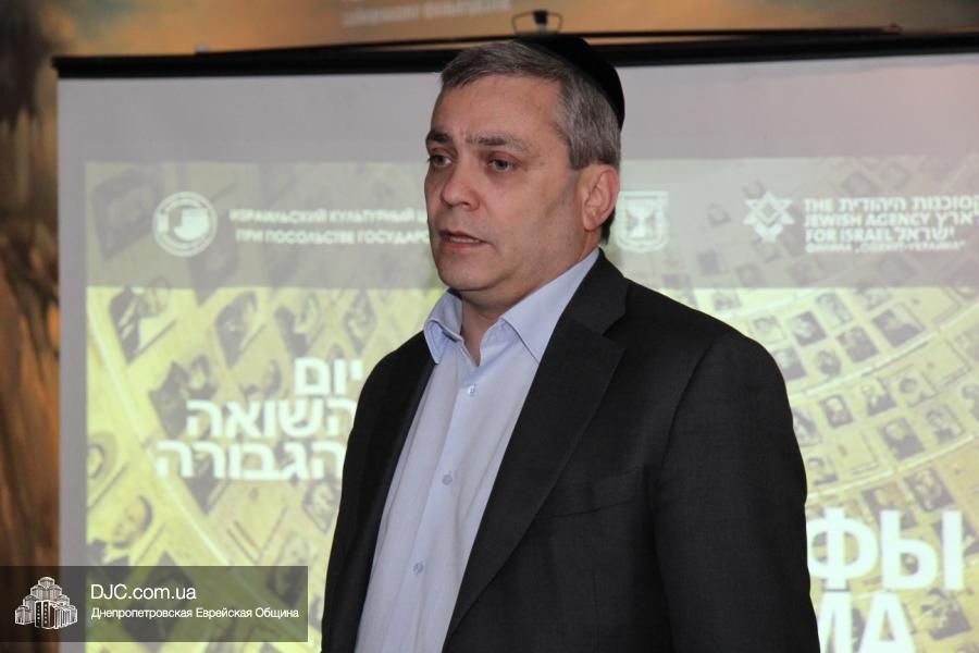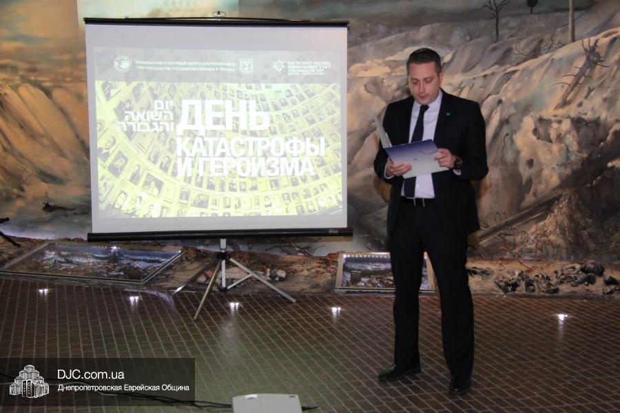 Первое слово было предоставлено второму секретарю Посольства государства Израиль в Украине, директору Израильского Культурного Центра Вячеславу Смоткину, который призвал тщательно хранить и оберегать память о страшной трагедии не только еврейского народа и Европы, но и всего мира. Он подчеркнул, что, несмотря на то, что со времен Шоа прошло больше семидесяти лет, крайне важно сберечь и передать память о ней и о каждой ее жертве, ибо, только так, помня о Катастрофе и Героизме, мы можем добиться того, чтобы подобные трагедии никогда больше не повторились.