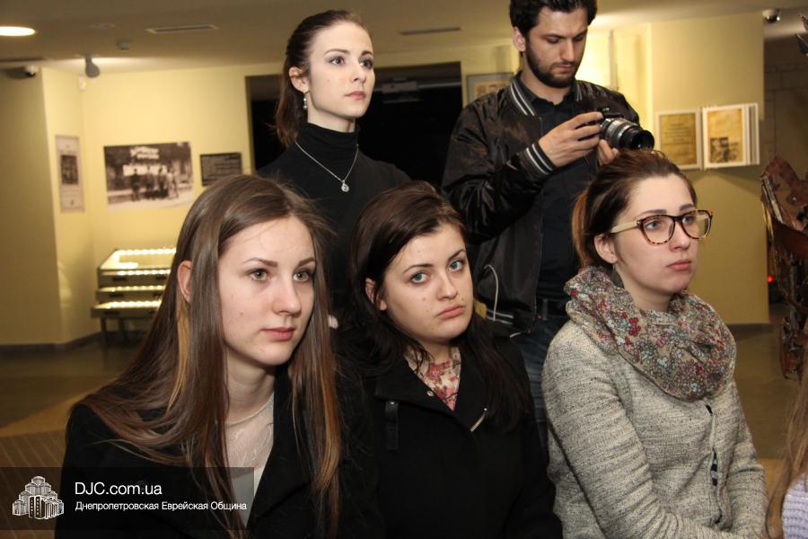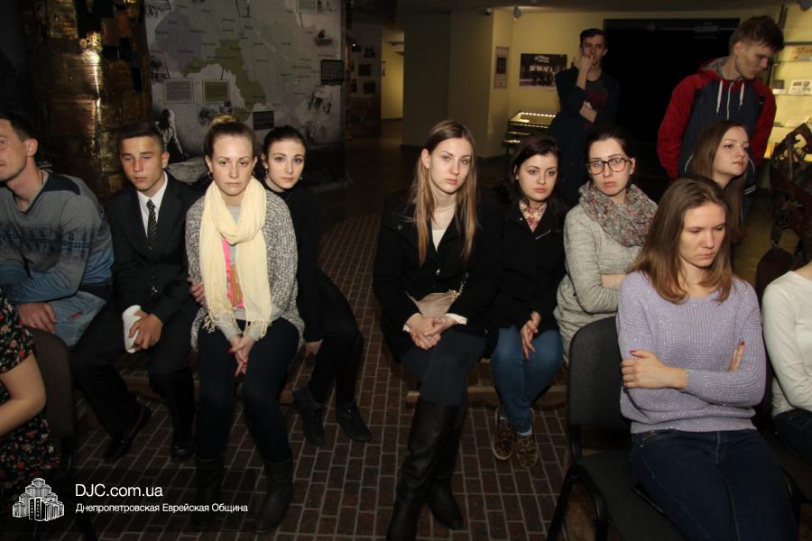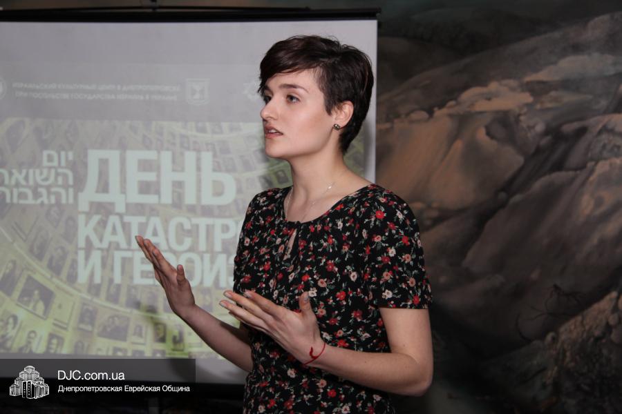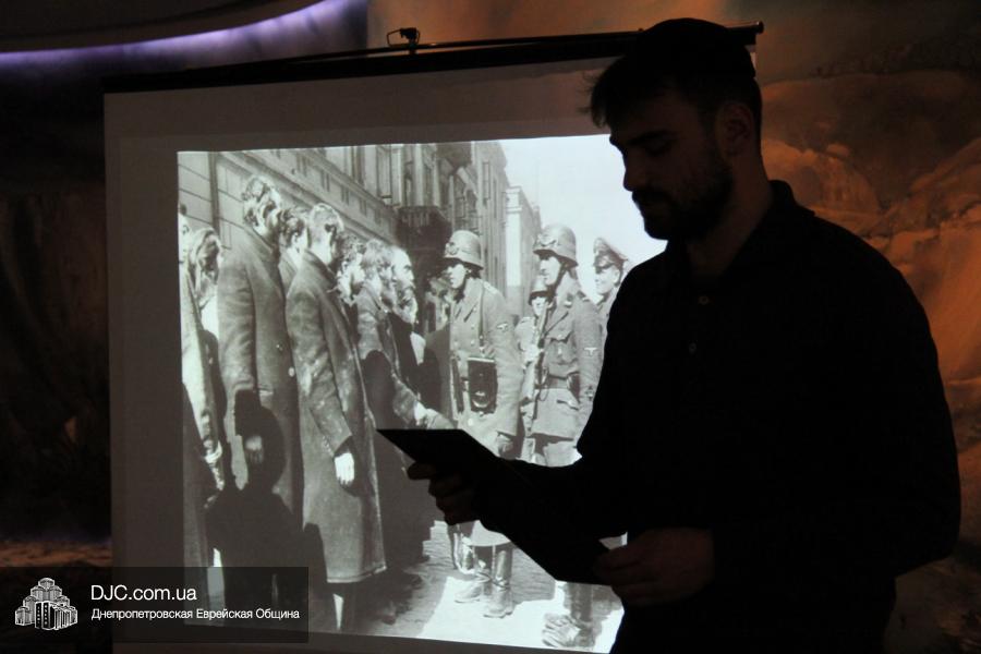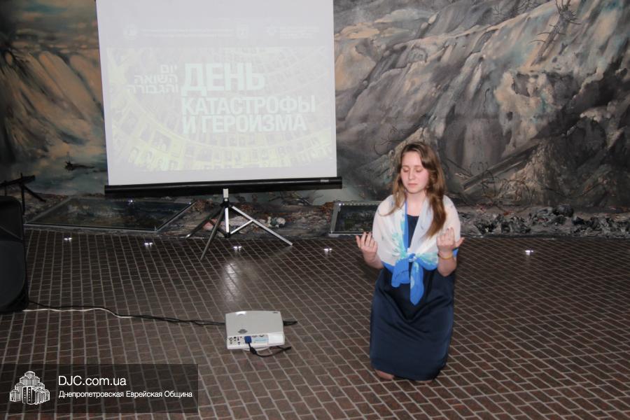 После демонстрации видеофрагментов о том, как отмечают Йом А Шоа в Израиле и о посещении еврейской молодежью лагеря смерти «Аушвиц-Биркенау», были зачитаны предсмертное письмо одного из руководителей восстания в Варшавском гетто Мордехая Анилевича и литературная композиция о трагедии детей, погибших в Холокосте.