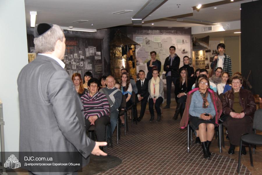 В своем выступлении Главный раввин Днепропетровска и региона Шмуэль Каминецкий подчеркнул, что нацисты пытались уничтожить еврейский народ физически, и главный ответ им – это продолжение еврейства в будущих поколениях, усиление еврейских общин и Израиля, как Еврейского Государства. «Очень важно, чтобы каждый передал детям, внукам и правнукам еврейское самосознание, чтобы каждый с гордостью отвечал, что он еврей, а не говорил, что евреем были дедушка или бабушка, – сказал раввин Каминецкий, – это очень важно, чтобы каждый позиционировал себя как еврей, чтобы гордился этим и защищал еврейский народ. Сейчас все больше людей формирует свои представления о мире из интернета, и я призываю всех посвятить хотя бы двадцать минут в день борьбе с антисемитизмом, с ненавистью к евреям, которую распространяют наши враги. Мы должны поддержать государство Израиль, ибо антисемитизм сейчас маскируется под антиизраильскую пропаганду, но мы должны хорошо понимать – это одно и то же. Сильный Израиль, сильные общины, еврейское продолжение – это и есть настоящая победа под гитлеризмом».