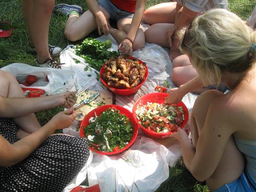 Не только активным отдыхом отличался воскресный день у цофимовцев, за весь день ребята съели сосиски и 2 ведра маринованного мяса приготовленного на огне, сами готовили салаты, ведь «Цофим» это в первую очередь единение с природой. А на природе нужно уметь прокормить себя и, если есть потребность, помочь другому в трудную минуту.