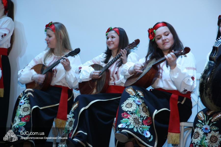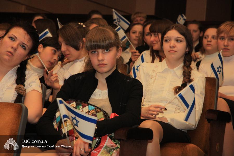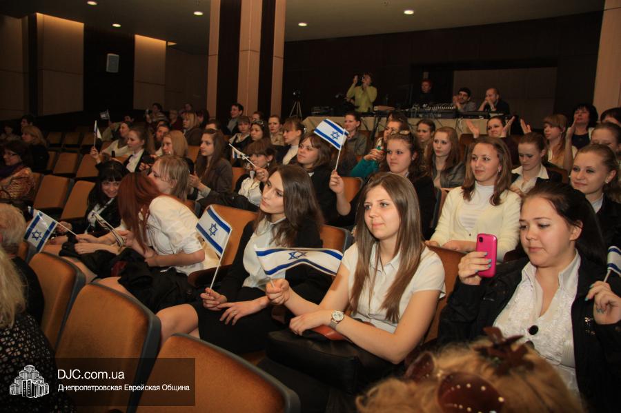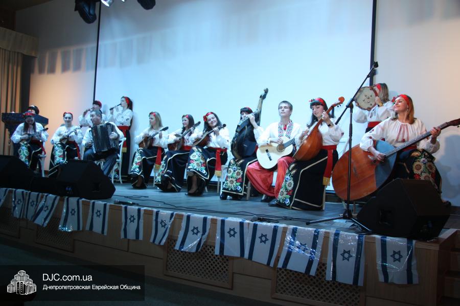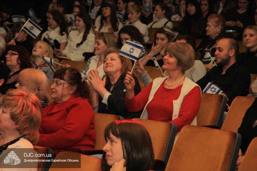 Открыл концерт коллектив народных инструментов Днепропетровского педагогического колледжа, который задал интонацию всему празднику, зафиксировав, что это украинский подарок государству Израиль, что это мероприятие не столько израильское, сколько в поддержку Израиля. Эта же идеологическая посылка нашла свое подтверждение и в тексте ведущей Татьяны Бондаревской, и в выступлениях многих коллективов.
