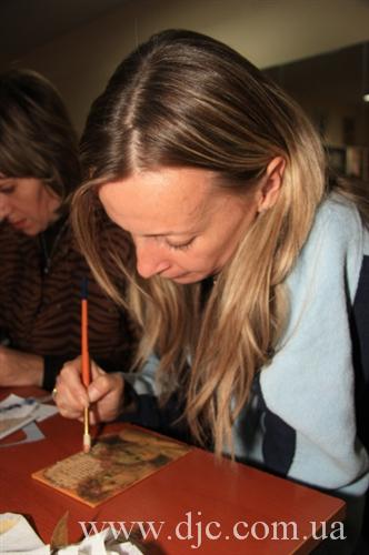 Затем состоялась серия мастер-классов, на которых полученные теоретические знания можно было закрепить практическими навыками. Так, в подтверждение темы о красоте, в технике валяния из шерсти изготавливались украшения; тему чудес продолжило изготовление эксклюзивных творческих работ из необычных материалов; а тему молитвы – изготовление благословений для дома в технике декупаж.