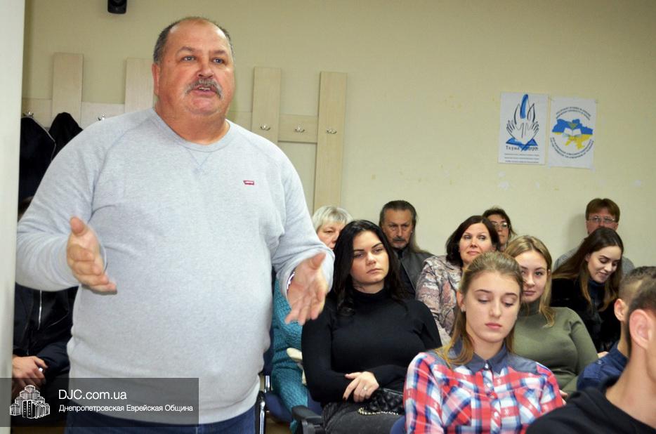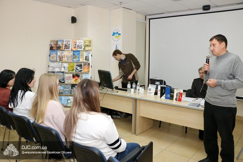 «Принцип нашего подхода «чужой боли не бывает», – сказал, открывая заседание клуба и представляя докладчика, Валентин Рыбалка, старший научный сотрудник музея «Память еврейского народа и Холокост в Украине» и Института «Ткума», – трагедия геноцида украинского народа не просто отражена в Еврейском Музее Днепра, но ее изучение является неотъемлемой частью понимания всех процессов истории нашей страны, которую Тимоти Снайдер образно назвал «Кровавой землей».