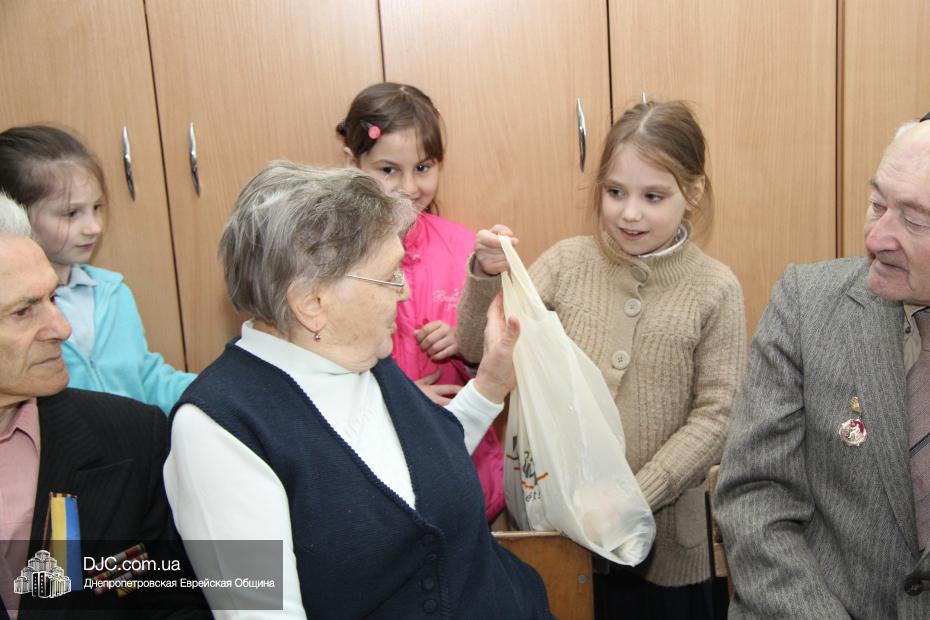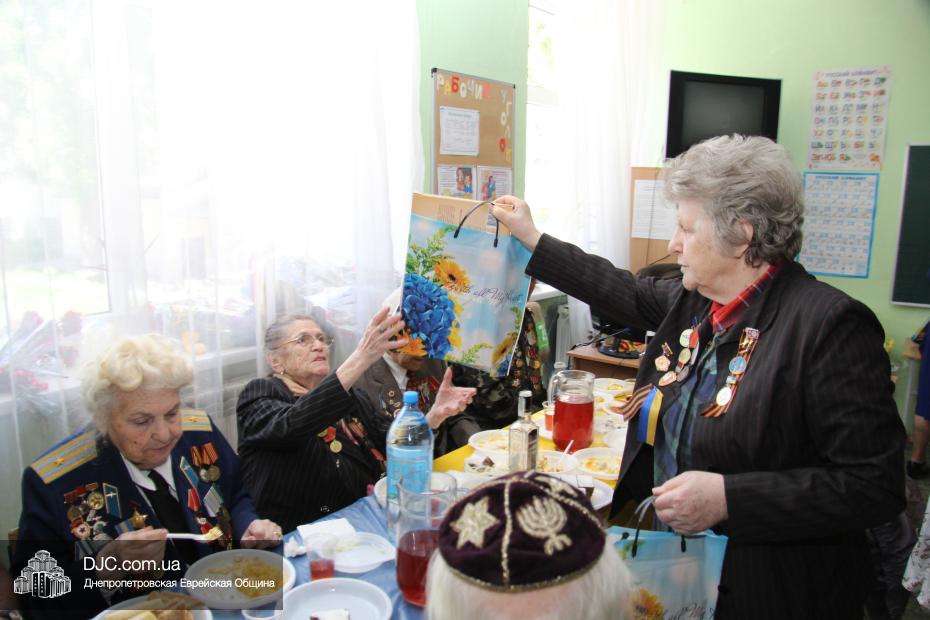 В завершении встречи Алла Гельберг вручила каждому ветерану памятный подарок от еврейской школы, в который была вложена открытка, сделанная руками учениками разных классов, как знак внимания и бесконечного уважения к их бессмертному подвигу.