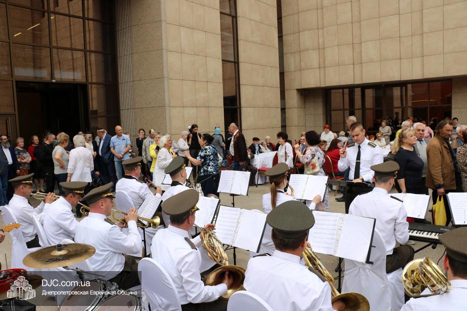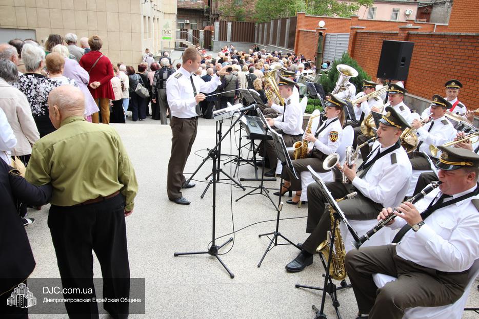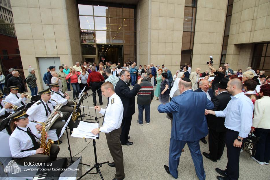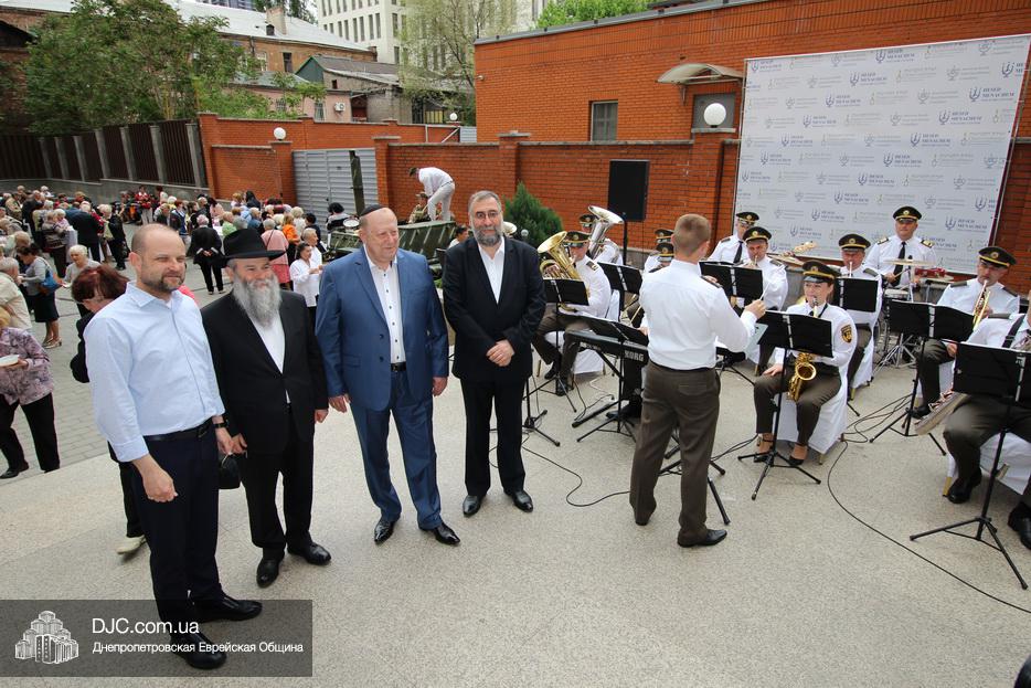 После большого торжественного концерта, организованного Благотворительным фондом «Хесед Менахем» в честь празднования Дня Победы, на внутренней площадке центра «Менора» состоялись праздничные гуляния с угощением из полевой кухни и под военный оркестр.