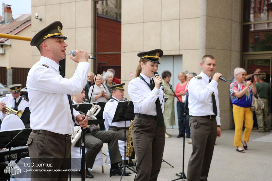 На верхней площадке были накрыты столы и расставлены стулья для тех, кому уже тяжело стоять, но многие, даже весьма пожилые люди, с радостью танцевали под военный оркестр штаба Оперативного командования «Схід», который играл не только военные песни, но и различные популярные мелодии, в том числе эллингтоновский «Караван», музыку из фильма «Призрак замка Моррисвилль» и многие другие.