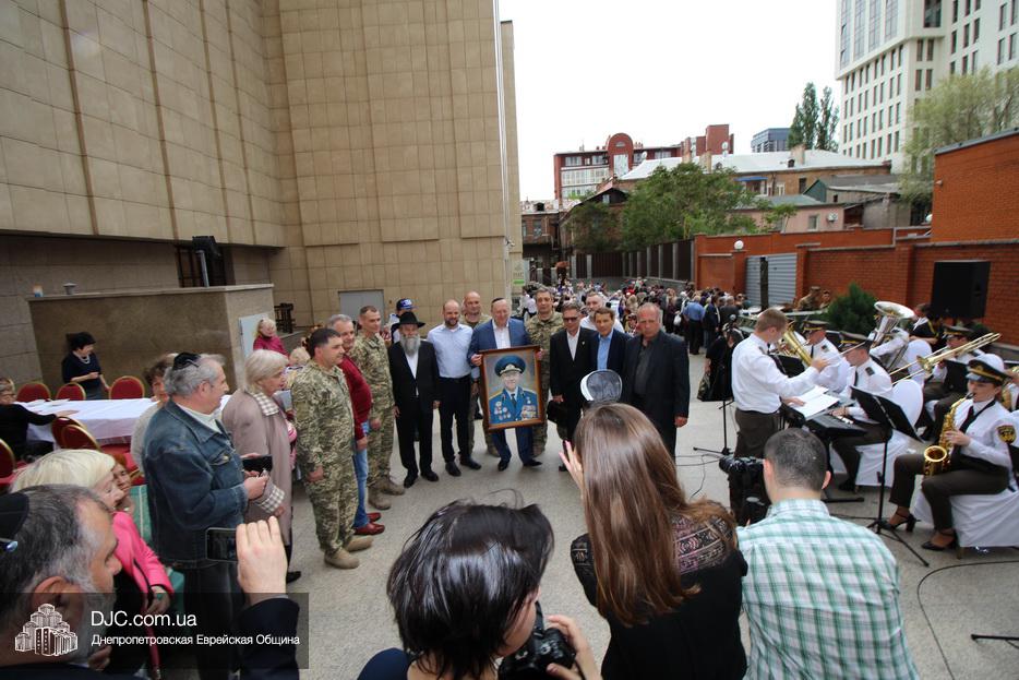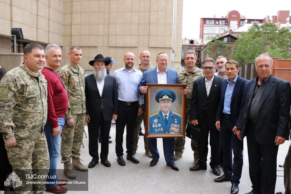 Многие подходили к директору Хеседа Анатолию Плескачевскому, чтобы поблагодарить его за чудесно организованный праздник и поздравить с наступившим семидесятилетием! Друзья по военной службе, например, подарили ему специально написанный художником портрет, где Анатолий Михайлович изображен в парадной форме при всех наградах.