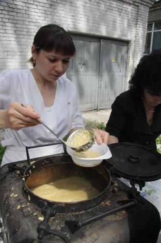 С большим удовольствием все получали порцию наваристой каши и фронтовые сто грамм (некоторые, впрочем, по состоянию здоровья ограничивались 50, а то и символическими 25), многие подходили за добавкой, что, безусловно, доказывает кулинарное мастерство армейских поваров.