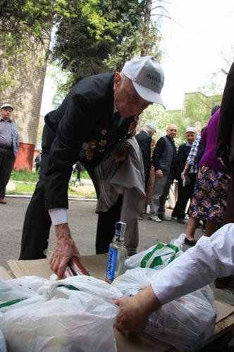 Вкусив каши и сделав «Лехаим» в честь дня Победы, ветераны могли получить на складе большой продуктовый набор, в который вошли как мука, макаронные изделия, растительное масло, чай, сок, две палки кошерной колбасы, бутылка водки, так и деликатесы: икра, ананасы, маслины, кофе, конфеты и шоколад.