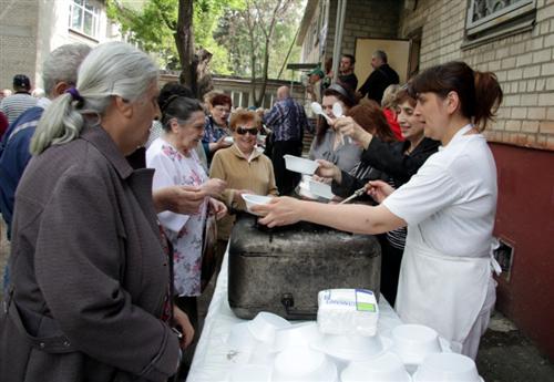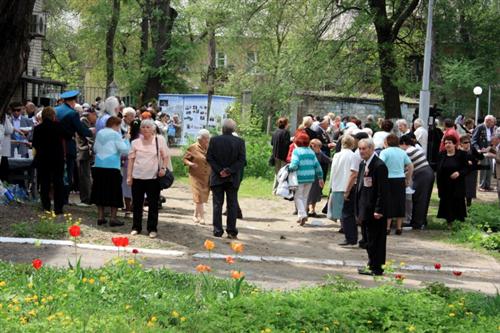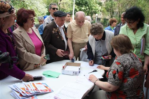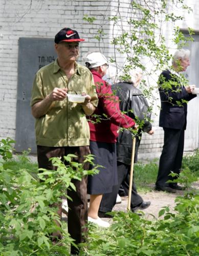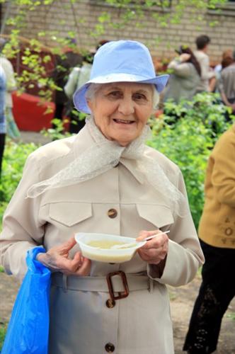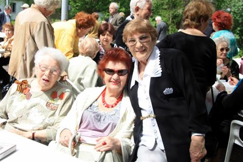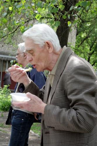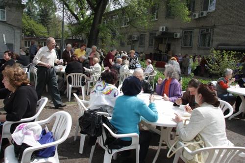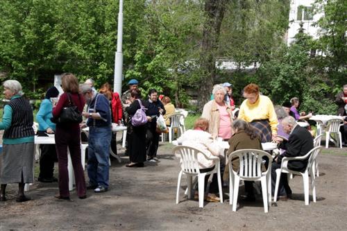 Руководство Хеседа позаботилось и о том, чтобы пожилым людям не надо было долго стоять на ногах на ярком майском солнышке – для них были установлены столы с удобными пластиковыми стульями.