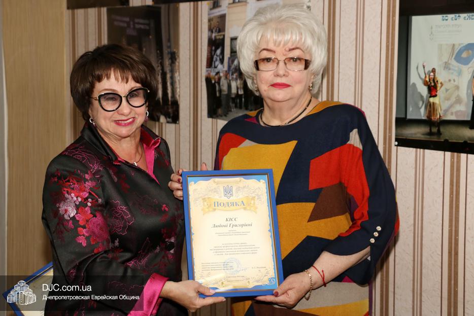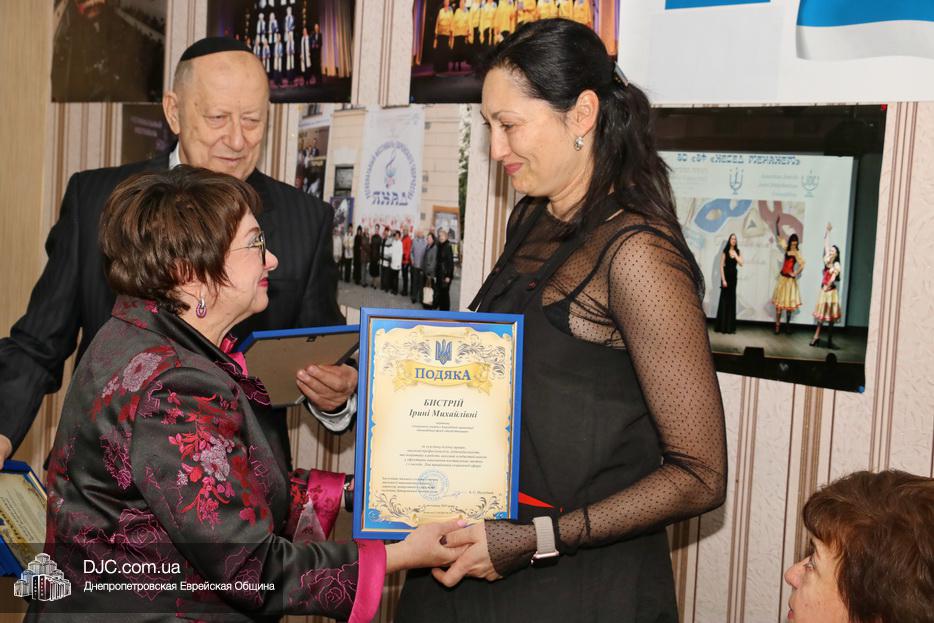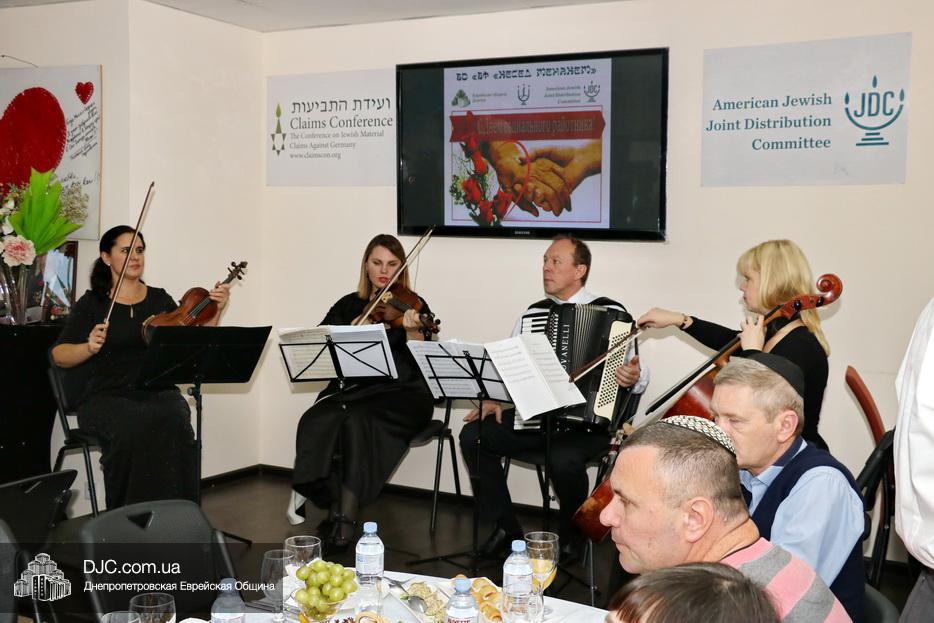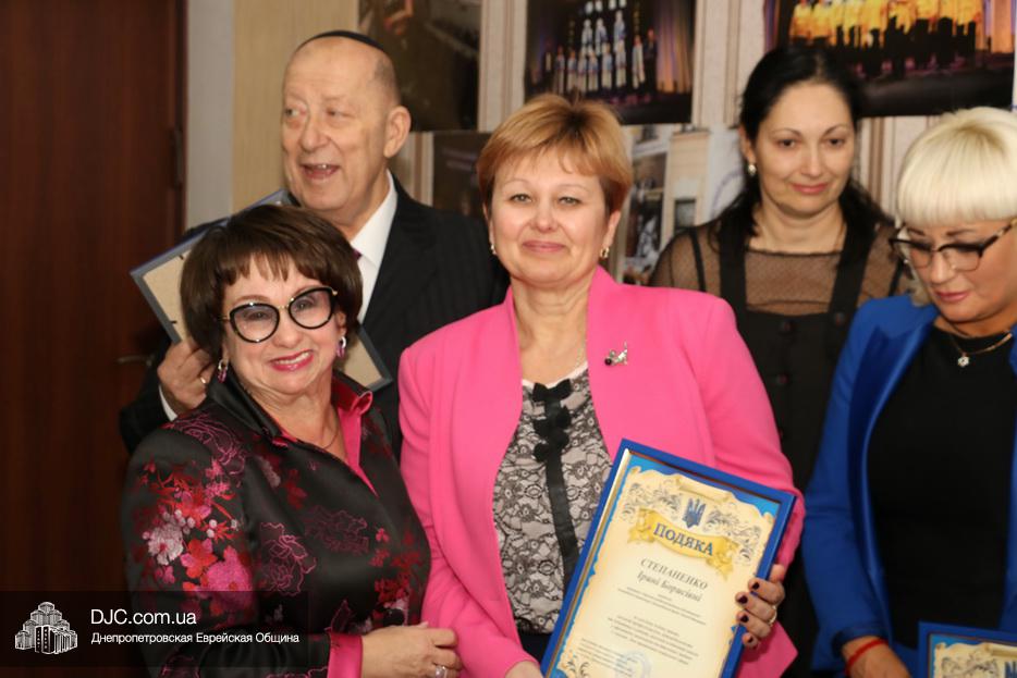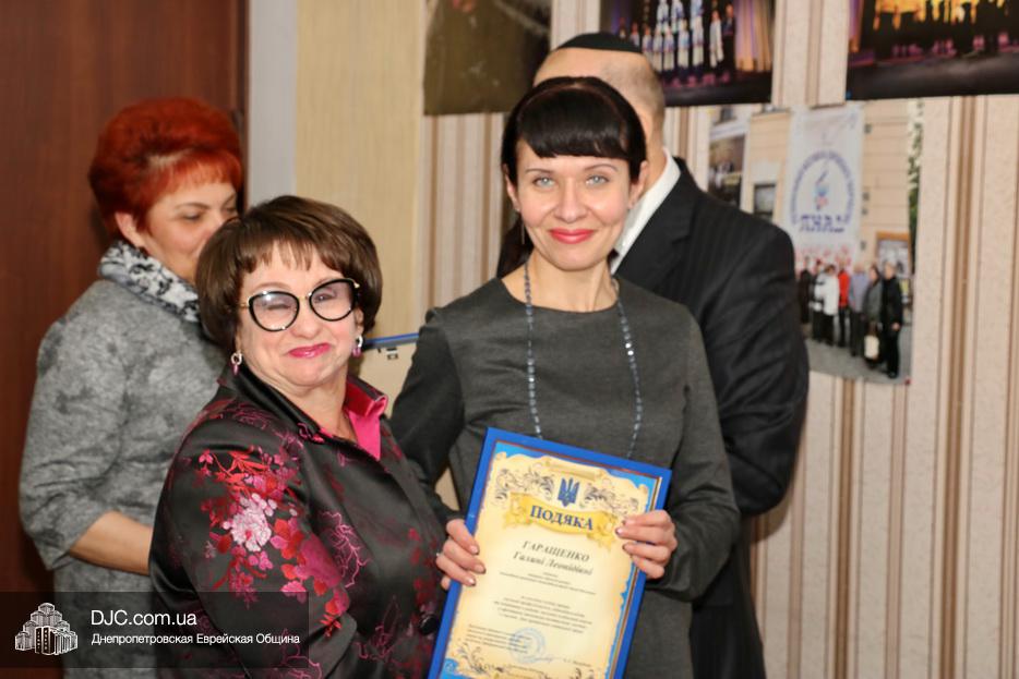 После церемонии награждения работников социальной службы Хеседа поздравила заместитель директора офиса «Джоинт» в Днепре госпожа Анна Григолая и почетные гости мероприятия. Много теплых слов было сказано в адрес этих благородных людей и много раз в их честь звучало «Лехаим!» под звуки живой музыки.