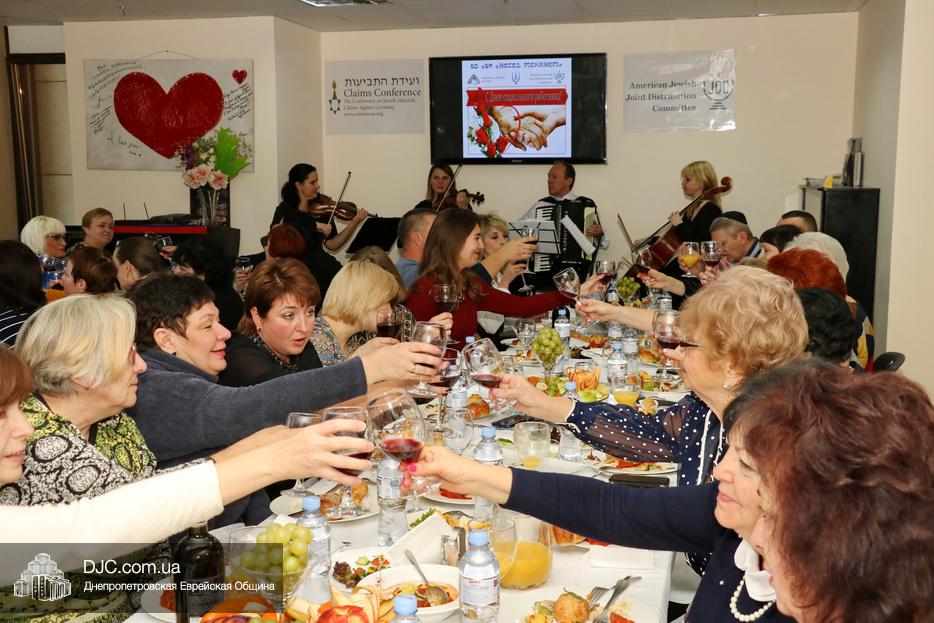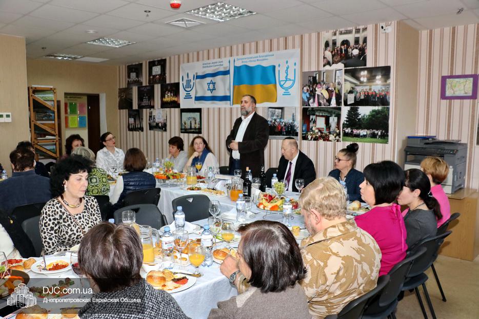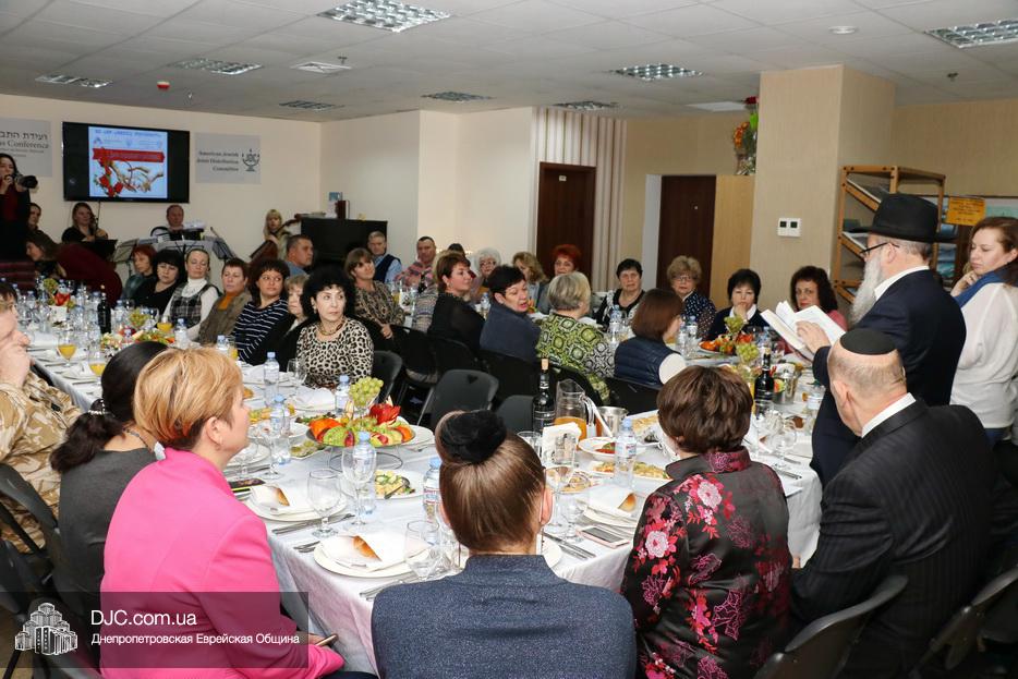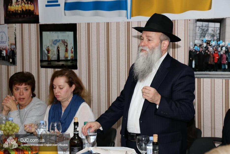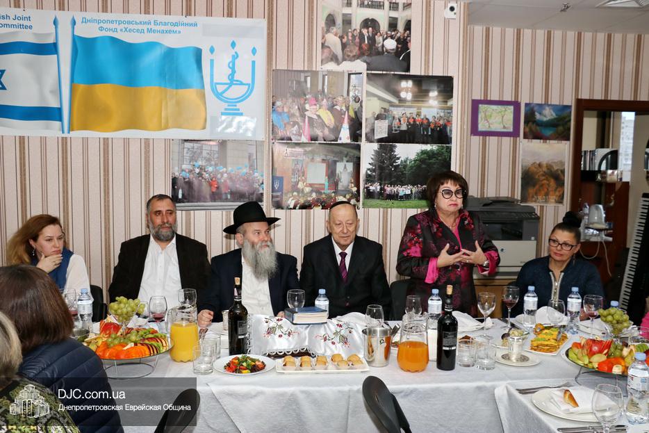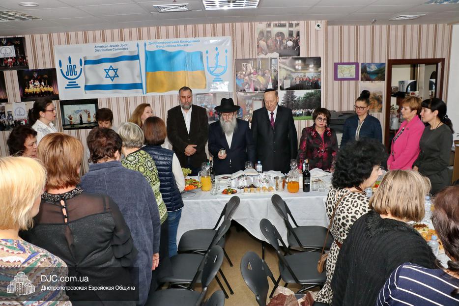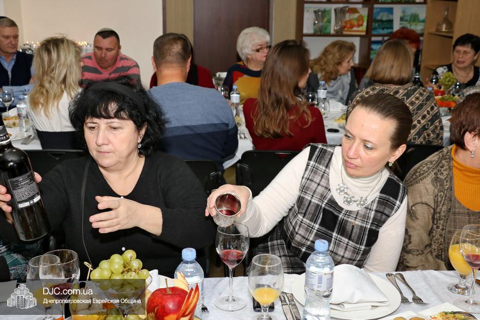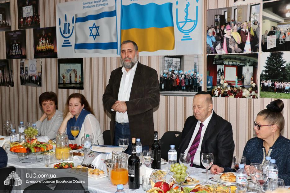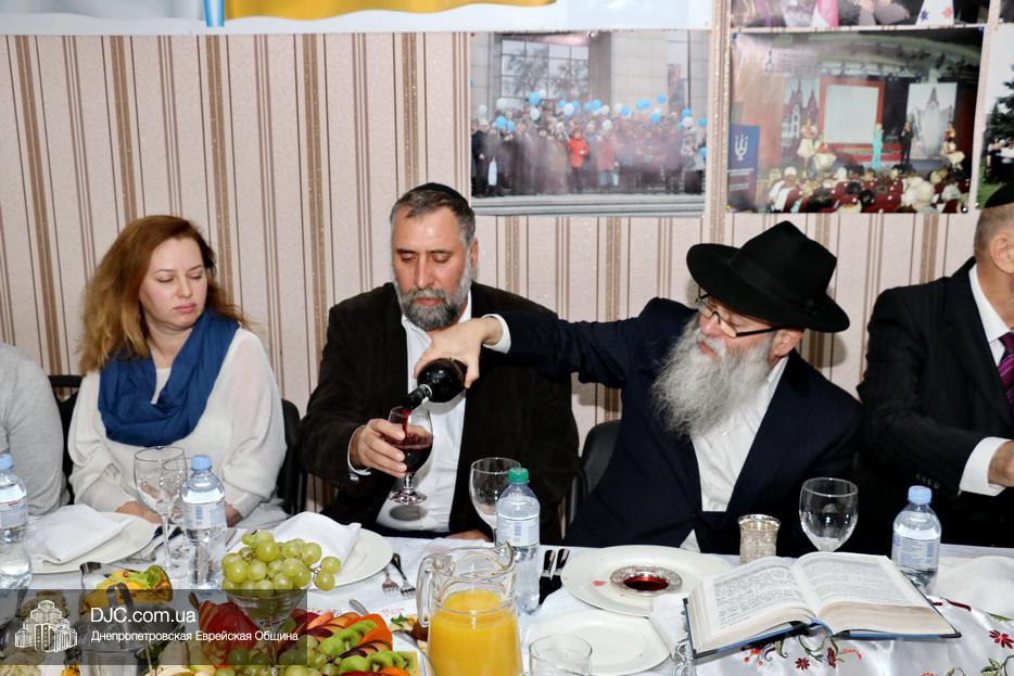 Руководители социальных служб и работники Хеседа собрались в торжественной атмосфере за празднично накрытыми столами. Директор «Хеседа Менахем» Анатолий Плескачевский поблагодарил Главного раввина Днепра и региона Шмуэля Каминецкого за возможность такого прекрасного празднования, за кошерное угощение и за то, что раввин сам пришел поздравить социальных работников. Раввин от всего сердца поблагодарил работников социальной службы Хеседа, которые делают такое важное и нужное дело, и, подчеркнув, что это – модельный «Кабалат Шабат», ибо Суббота настанет только через несколько часов, провел показательную церемонию Кидуш.