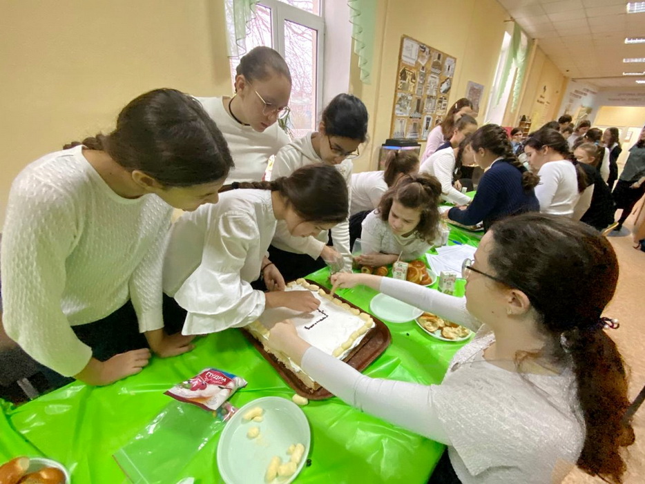 Старшие классы после фарбренгена получили ряд заданий и вопросов, ответив на которые они зарабатывали различные виды украшений для торта. Затем каждый класс получил торт. Задание состояло в том, что нужно было украсить этот торт, указав свою связь с Ребе. Девочки сделали торты в виде Торы, самолета, который летит к Ребе, Севен Севенти».