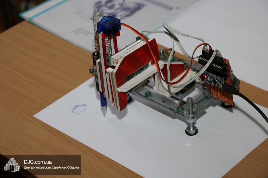 Следует вообще отметить Царичанскую школу. Из трех представленных работ только одна, и именно это устройство для вытирания доски, очень практичное и вполне реализуемое, не было отмечено призом, две другие работы, «Машина, которая рисует» и «Источники альтернативной энергии для полива растений», вошли в список победителей – «лучшие», и поэтому Царичанская школа может быть признана чемпионом конкурса – 66% работ стали призерами, шутка ли! (Корреспондента нашего сайта привела в восторг и деревянная головка штатива – решение более чем неожиданное и восхитительное, правда она не участвовала в конкурсе, хотя приз журналистских симпатий и получила).