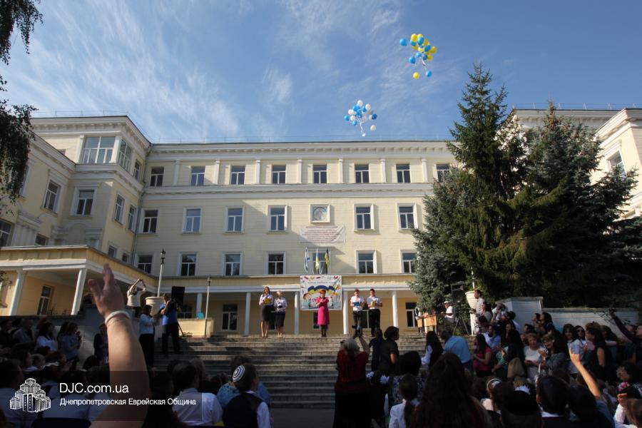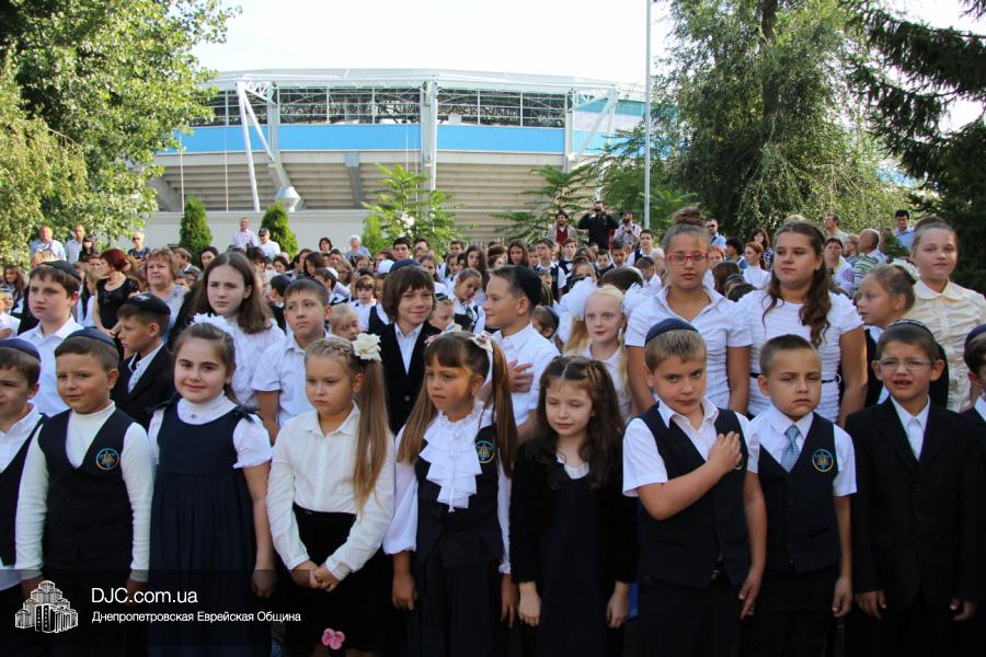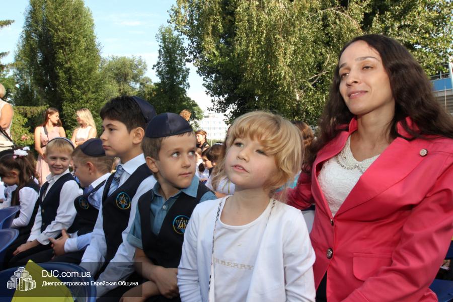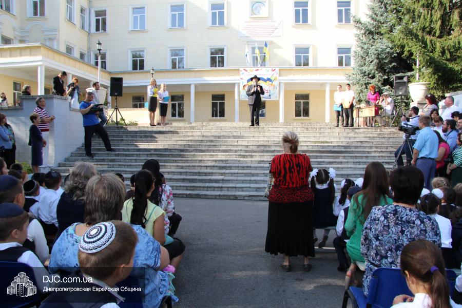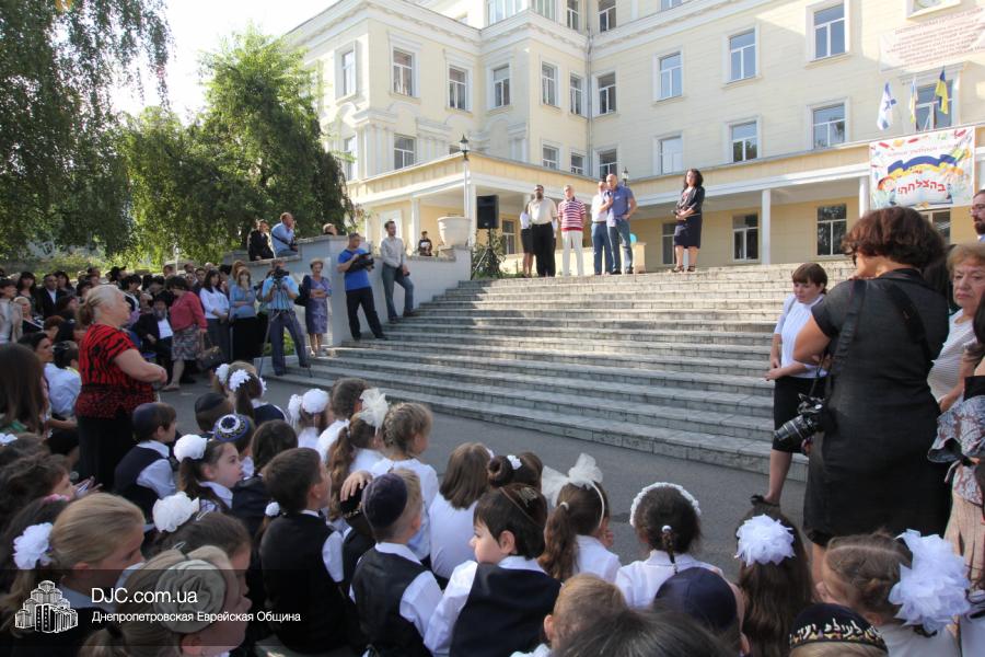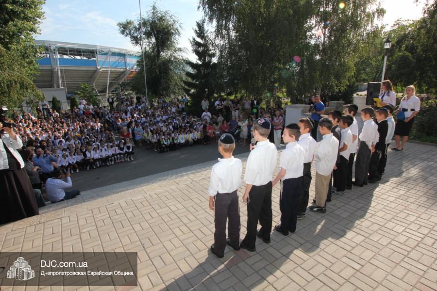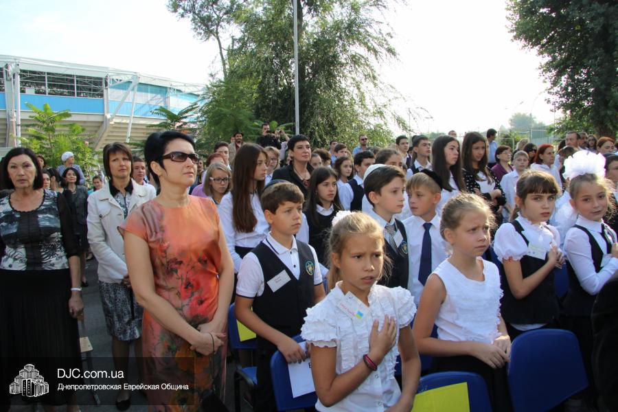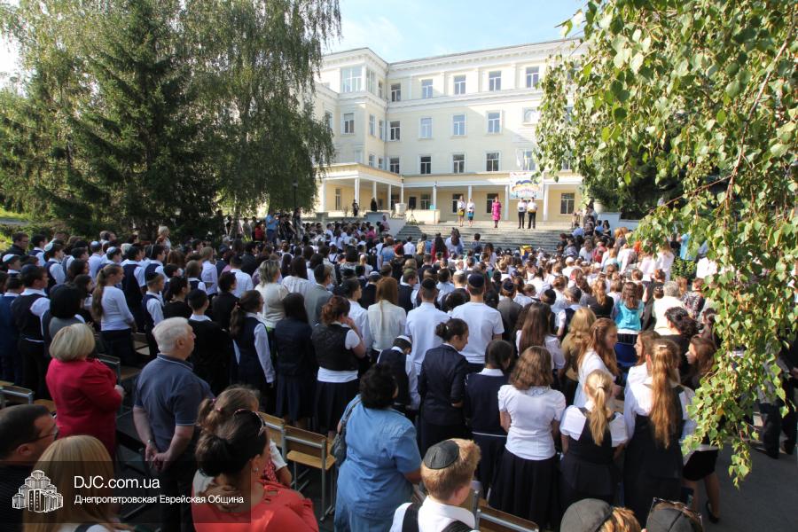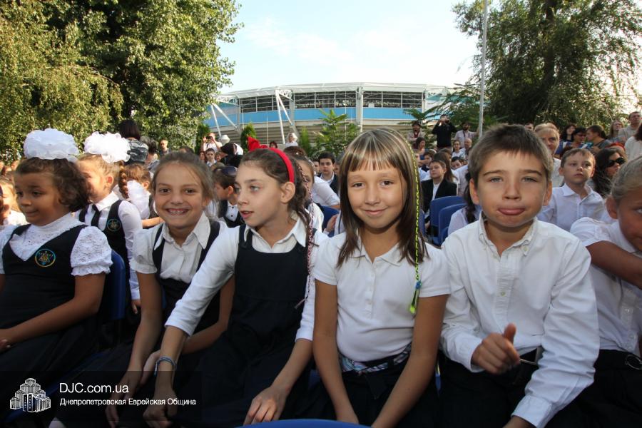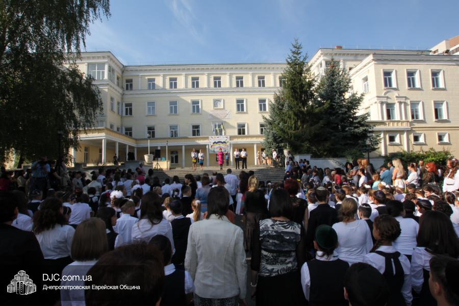 Как всегда, торжественная линейка в честь Дня Знаний прошла на ступенях перед главным корпусом школы. На ней собрались отдохнувшие за лето школьники, их родители, педагоги, администрация школы и руководство еврейской общины нашего города и еврейских структур. Вместе с ними в линейке приняли участие и школьники из восточных областей Украины, которые вместе со своими семьями вынуждены были бежать в Днепропетровск и сейчас приступают к обучению в днепропетровской еврейской школе.