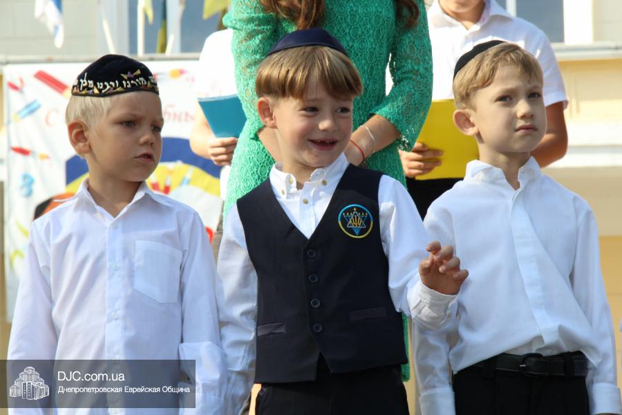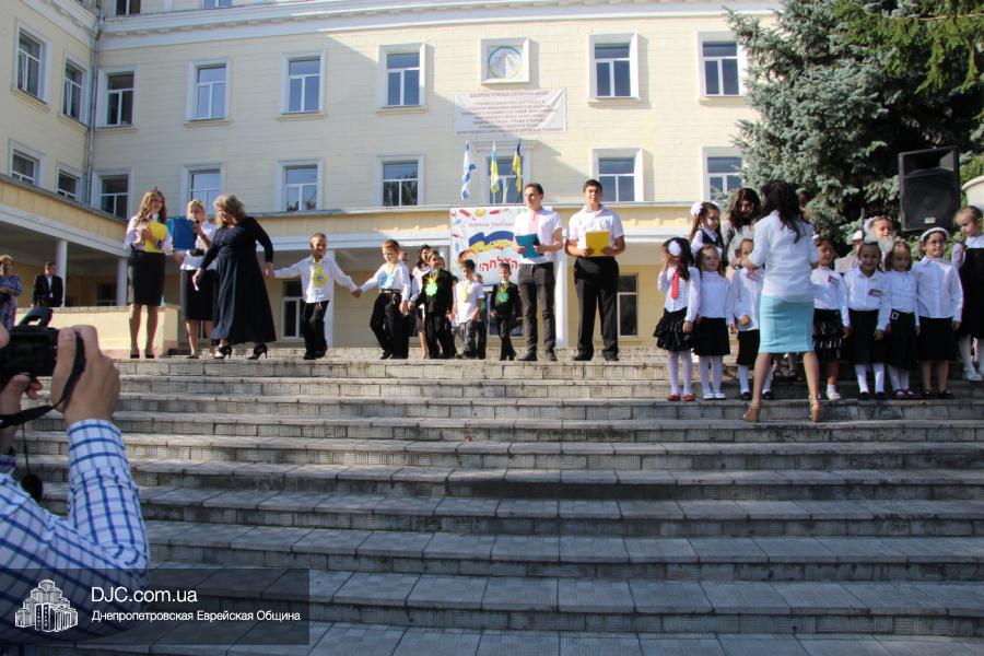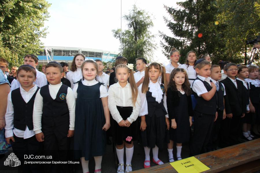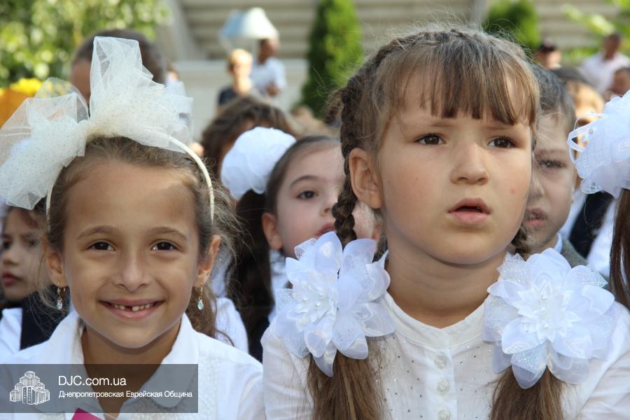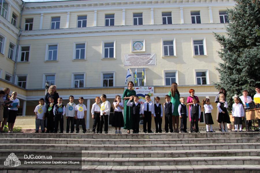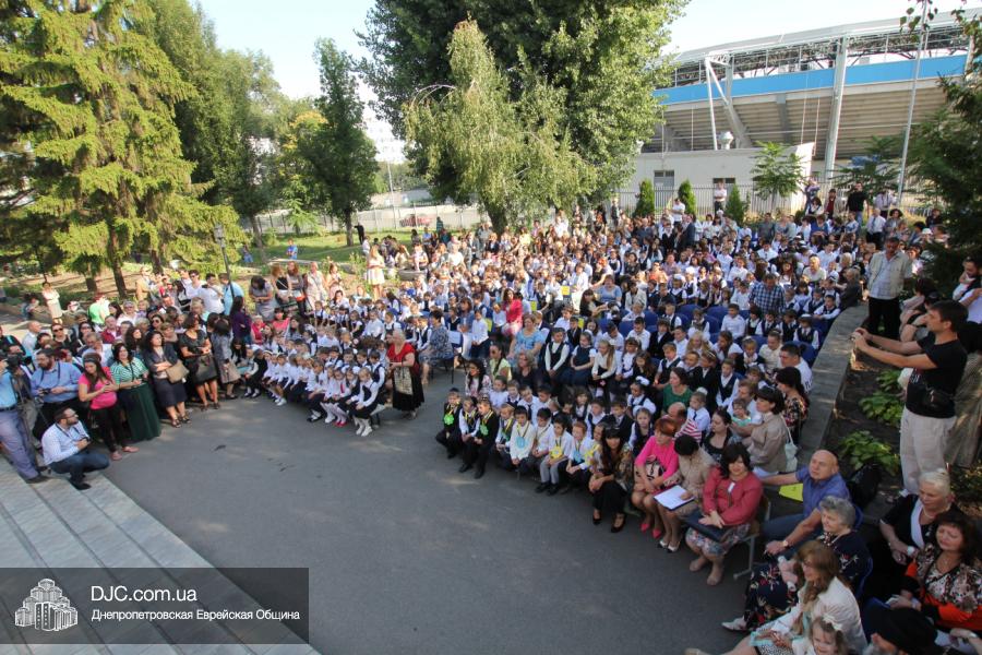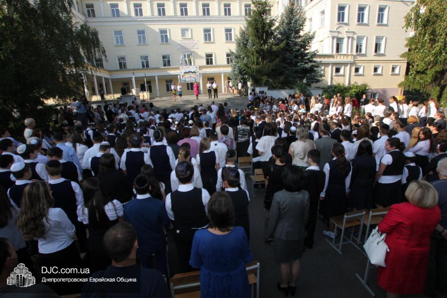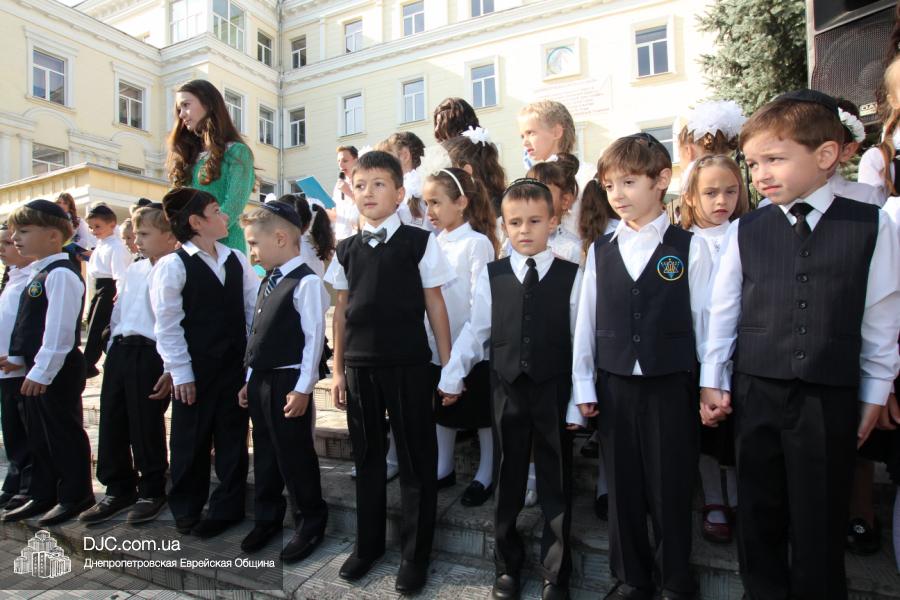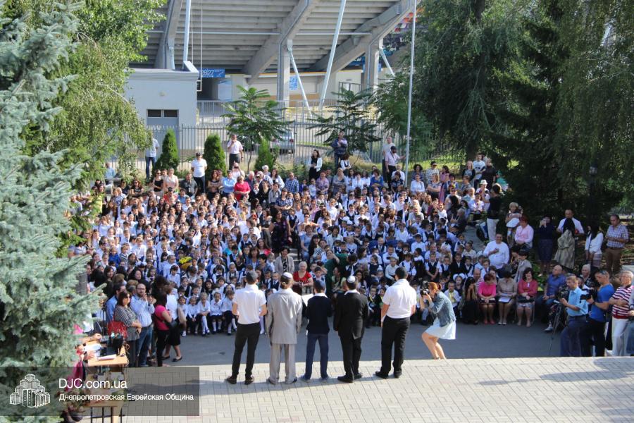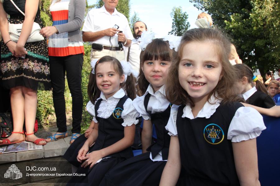 Как всегда, торжественная линейка в честь Дня Знаний прошла на ступенях перед главным корпусом школы. На ней собрались отдохнувшие за лето школьники, их родители, педагоги, администрация школы и руководство еврейской общины нашего города и еврейских структур. Вместе с ними в линейке приняли участие и школьники из восточных областей Украины, которые вместе со своими семьями вынуждены были бежать в Днепропетровск и сейчас приступают к обучению в днепропетровской еврейской школе.