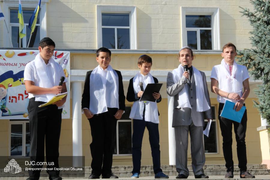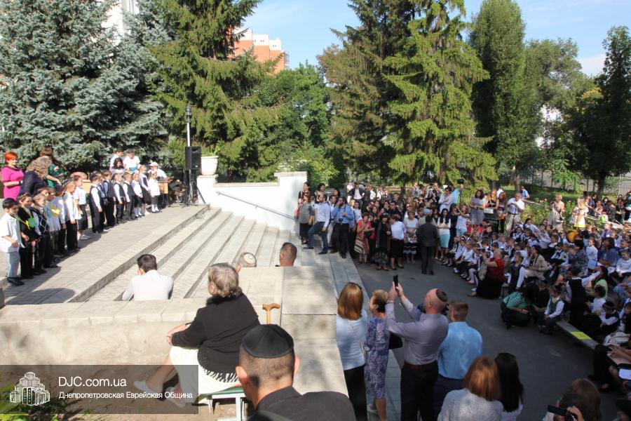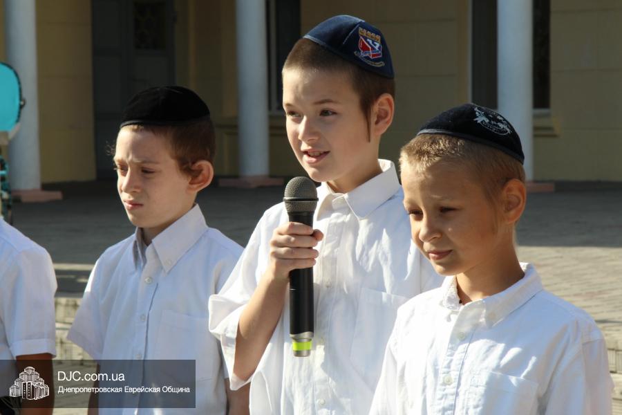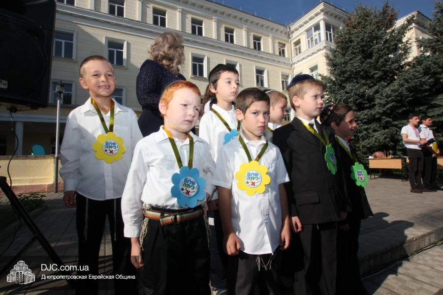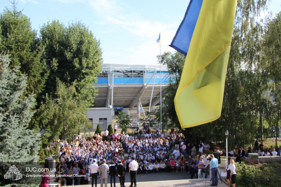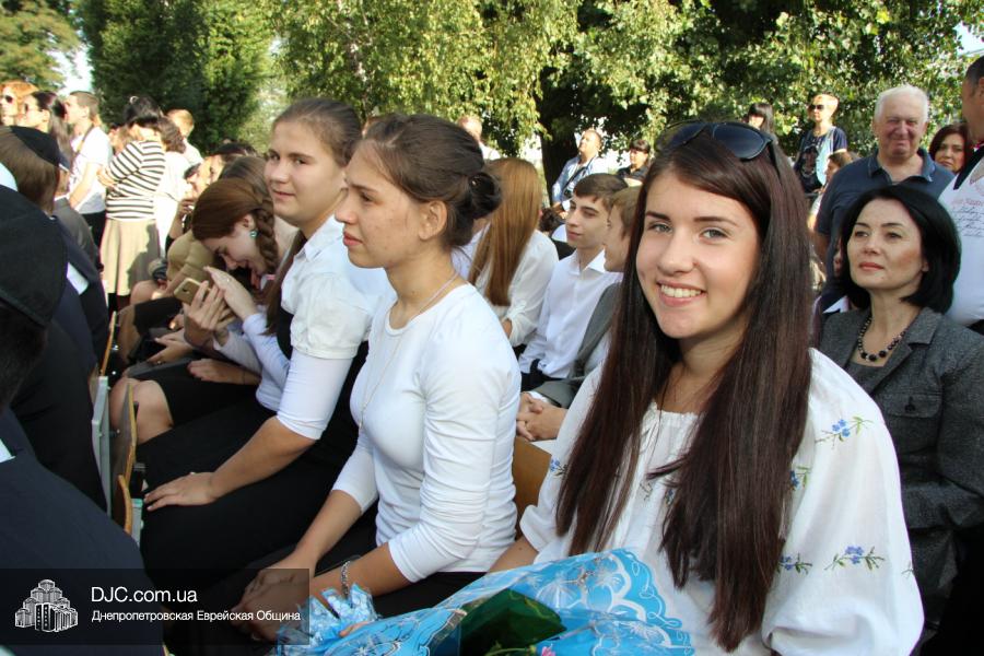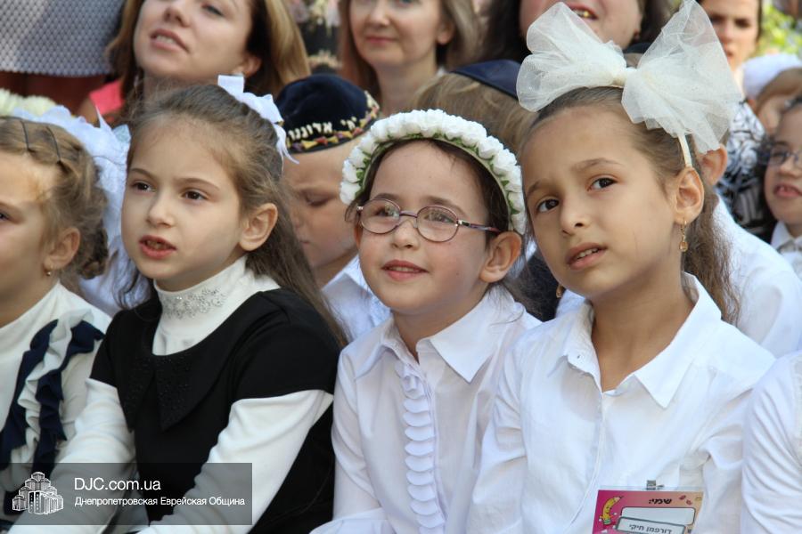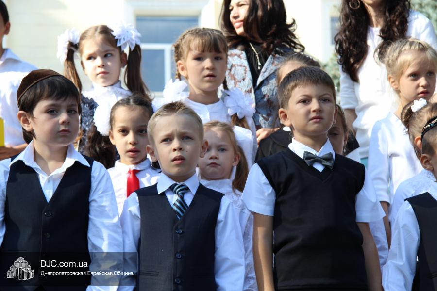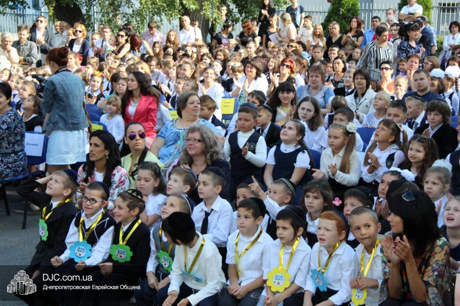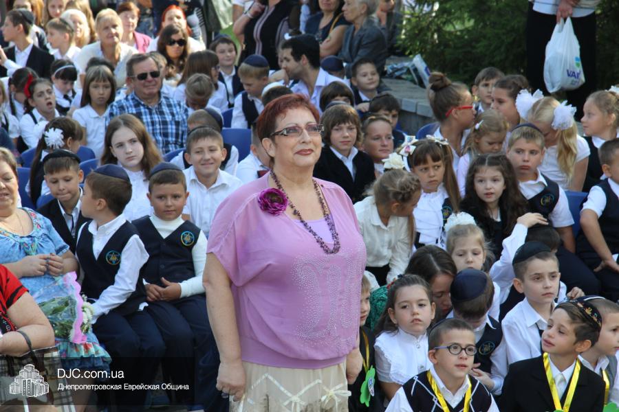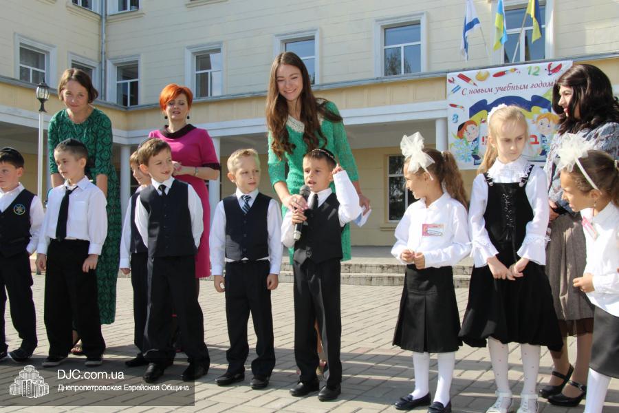 Как всегда, торжественная линейка в честь Дня Знаний прошла на ступенях перед главным корпусом школы. На ней собрались отдохнувшие за лето школьники, их родители, педагоги, администрация школы и руководство еврейской общины нашего города и еврейских структур. Вместе с ними в линейке приняли участие и школьники из восточных областей Украины, которые вместе со своими семьями вынуждены были бежать в Днепропетровск и сейчас приступают к обучению в днепропетровской еврейской школе.