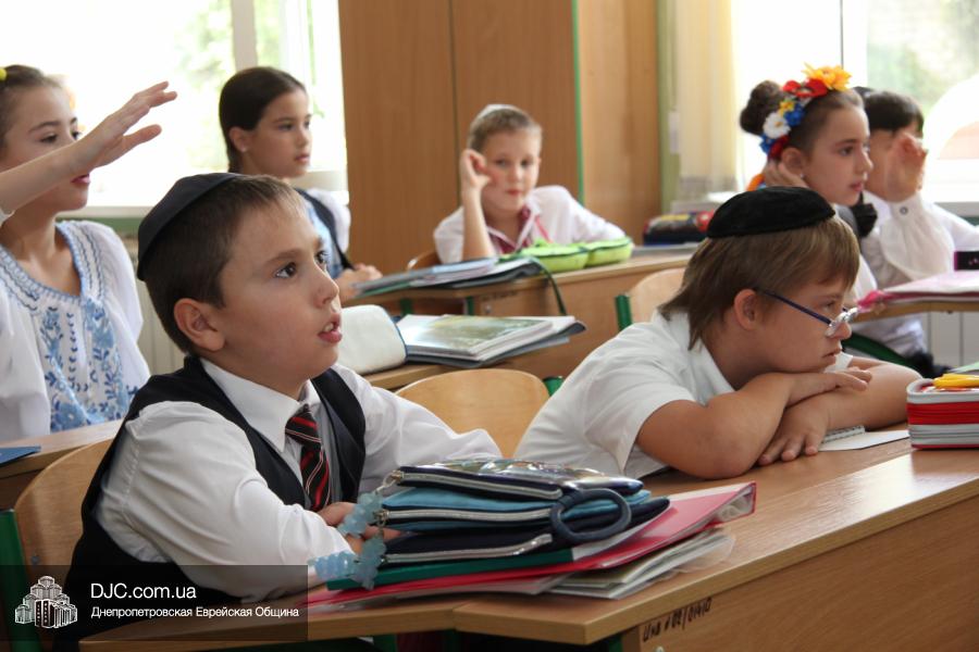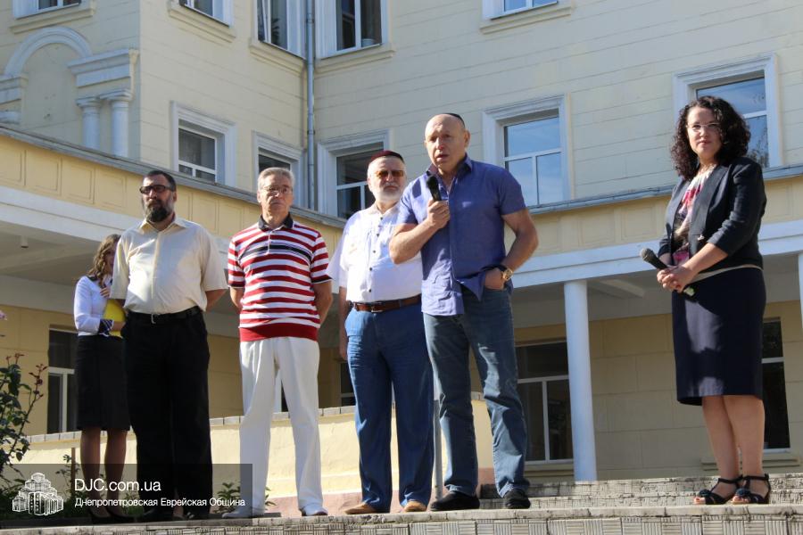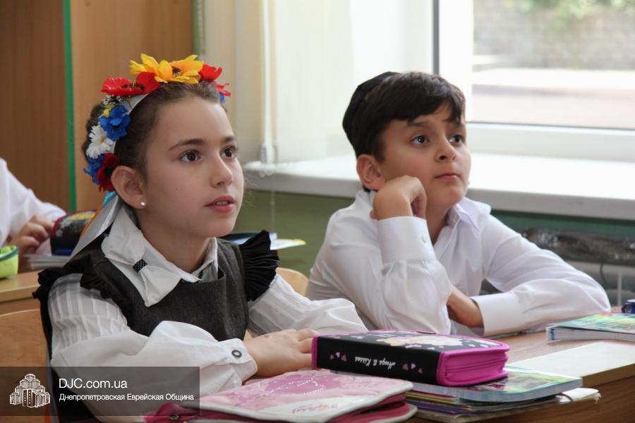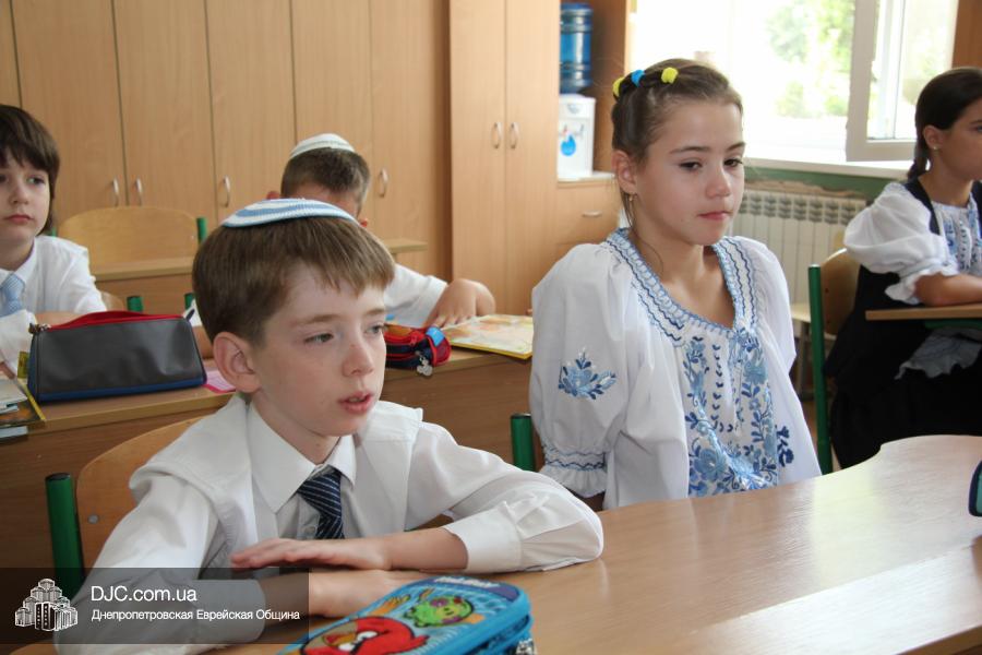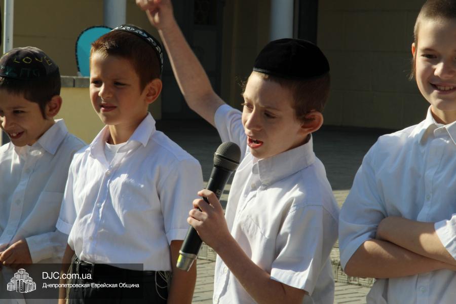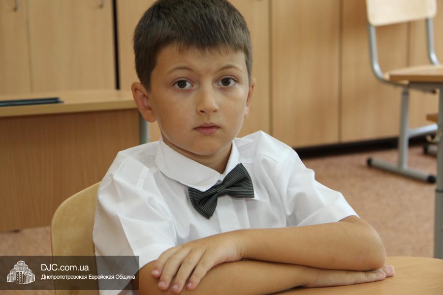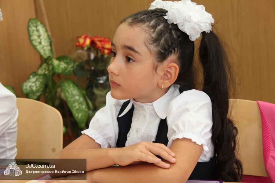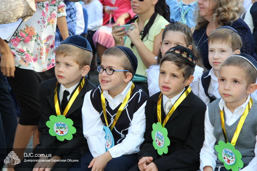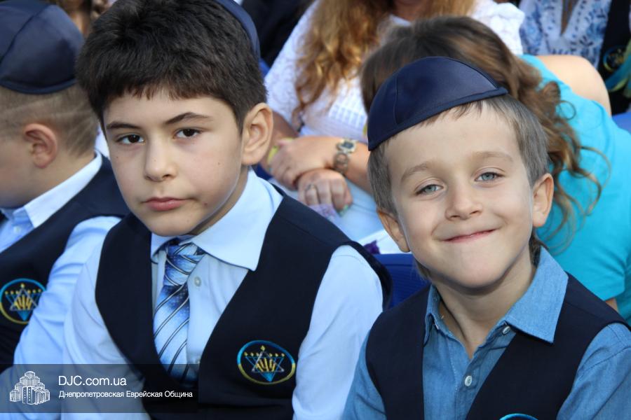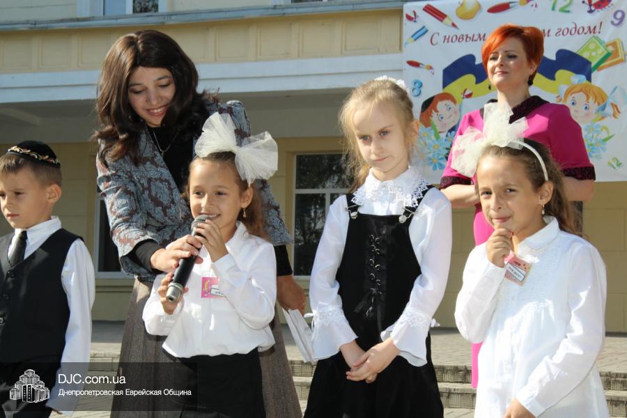 Как всегда, торжественная линейка в честь Дня Знаний прошла на ступенях перед главным корпусом школы. На ней собрались отдохнувшие за лето школьники, их родители, педагоги, администрация школы и руководство еврейской общины нашего города и еврейских структур. Вместе с ними в линейке приняли участие и школьники из восточных областей Украины, которые вместе со своими семьями вынуждены были бежать в Днепропетровск и сейчас приступают к обучению в днепропетровской еврейской школе.