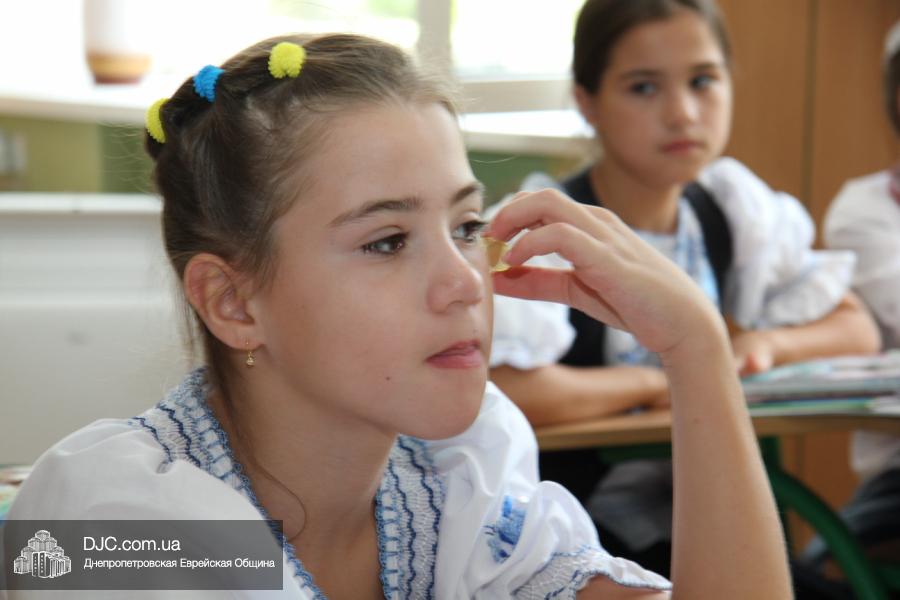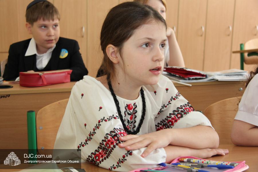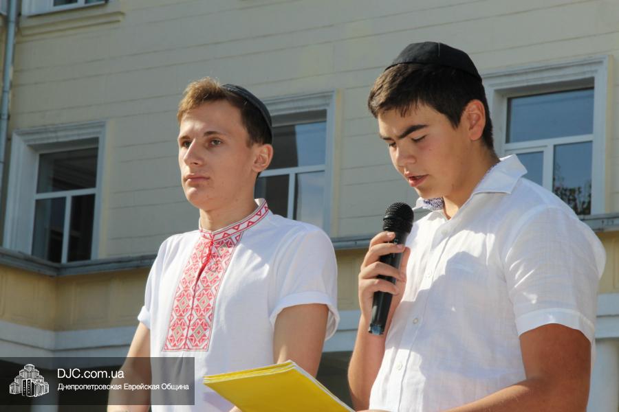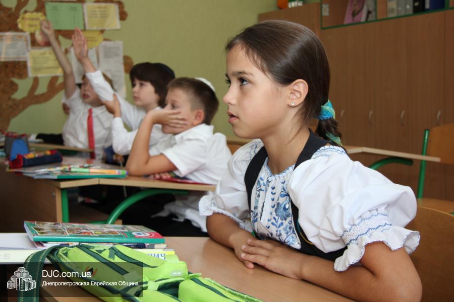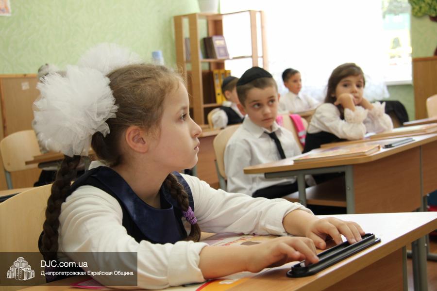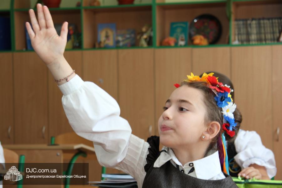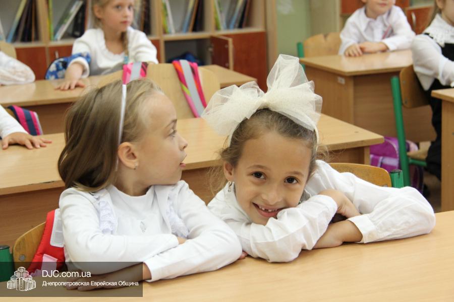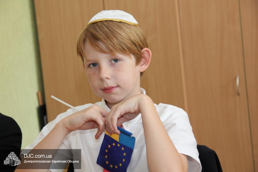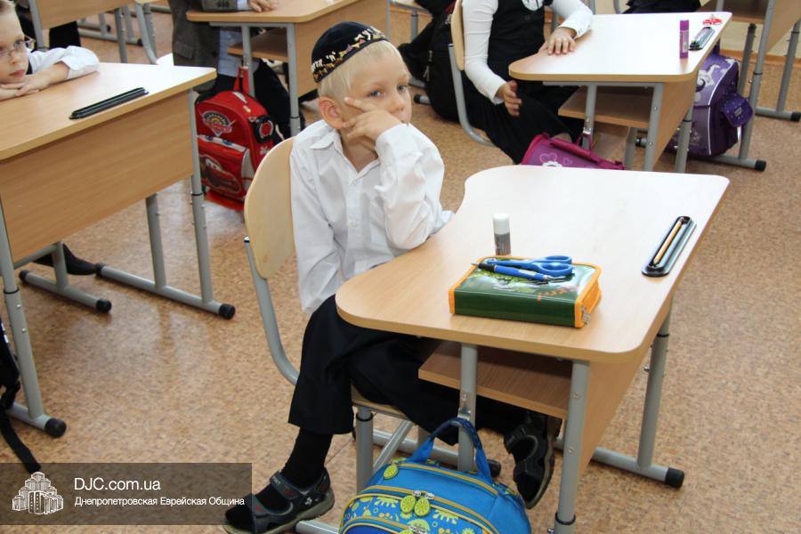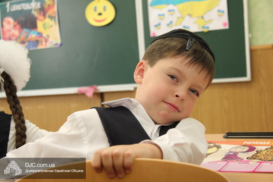 Как всегда, торжественная линейка в честь Дня Знаний прошла на ступенях перед главным корпусом школы. На ней собрались отдохнувшие за лето школьники, их родители, педагоги, администрация школы и руководство еврейской общины нашего города и еврейских структур. Вместе с ними в линейке приняли участие и школьники из восточных областей Украины, которые вместе со своими семьями вынуждены были бежать в Днепропетровск и сейчас приступают к обучению в днепропетровской еврейской школе.