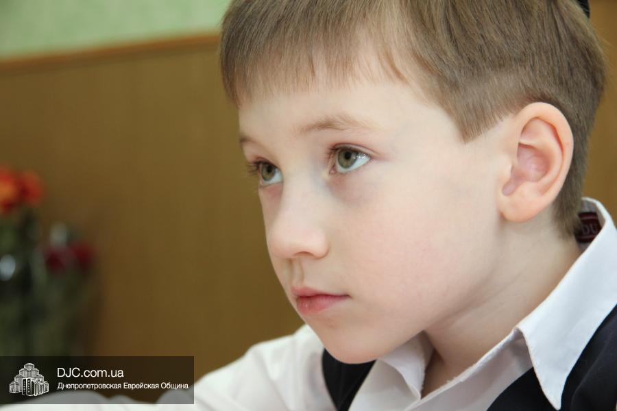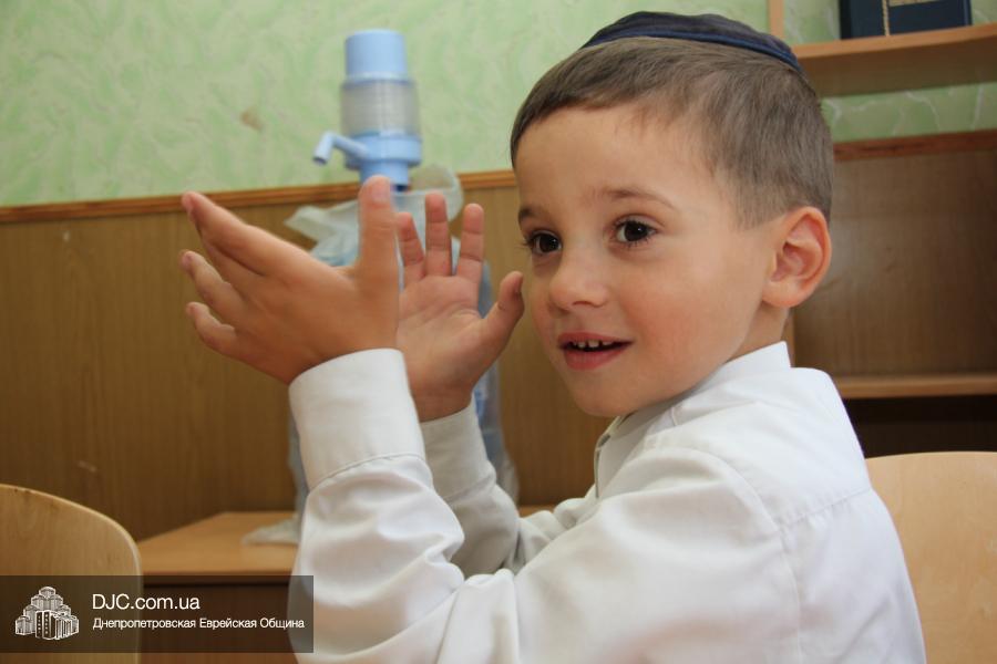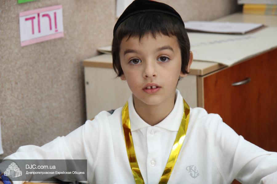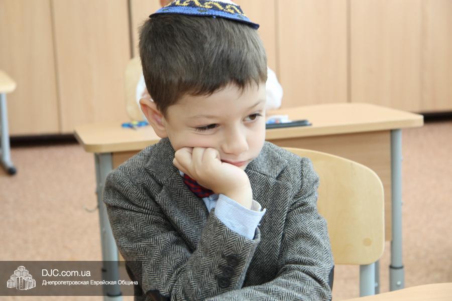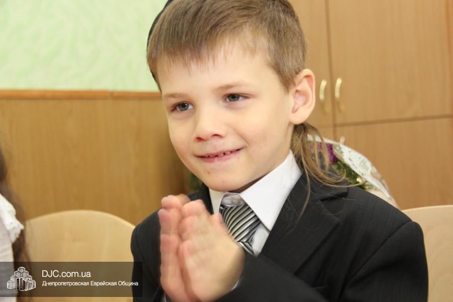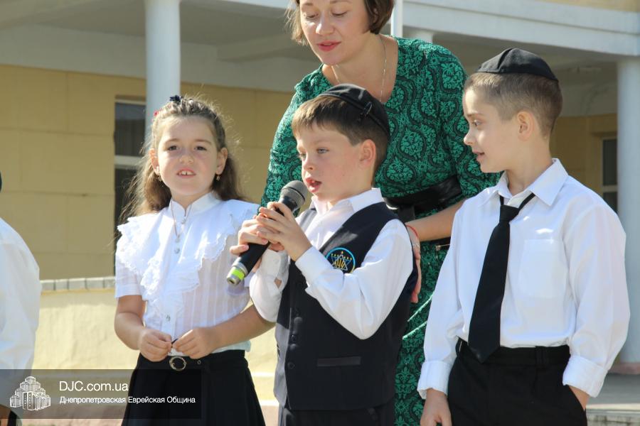 После на сцену вышел вновь собравшийся после летних каникул «Клуб еврейских джентльменов», который в юмористической, прозаически-песенной форме поведал первоклассникам и их родителям, какое это учебное заведение – еврейская школа Днепропетровска, какие здесь работают преподаватели и как здесь учится еврейским детям. Ну а малыши, которые пришли в первый класс еврейской школы, продемонстрировали свои таланты, продекламировав праздничные четверостишья о себе и своем школьном будущем.