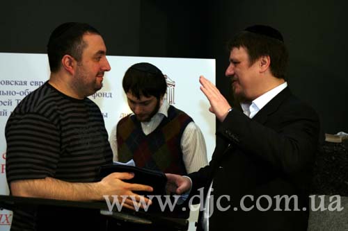 Также студентов поздравил главный сойфер Национального Сойферского центра Рувен Марголин и вице-президент Фонда "Шиурей Тора" Дан Макагон, который и вручил десяти студентам бизнес-школы тфилины.