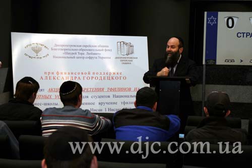 Обращаясь к студентам Бизнес-школы на торжественной церемонии вручения тфилин, главный раввин Днепропетровска и Днепропетровского региона Шмуэль Каминецкий подчеркнул важность исполнения этой заповеди для духовного здоровья каждого еврея, и выразил уверенность, что каждый из студентов Бизнес-школы и всех программ Фонда "Шиурей Тора" не только сам каждый будний день станет возлагать тфилин, но и научит этому своих сыновей.