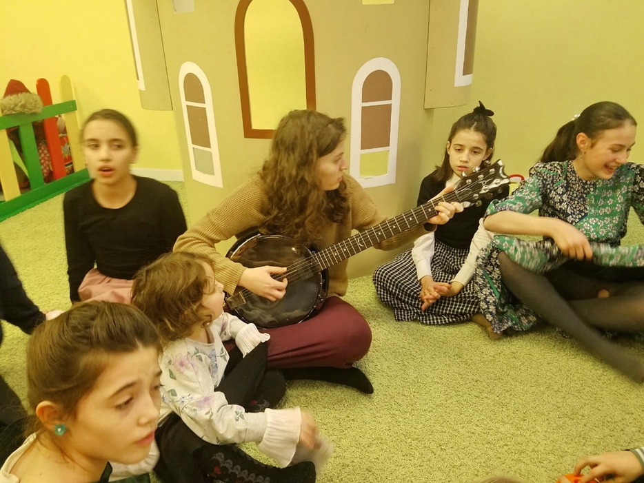 Следующим этапом мероприятия было складывание пазла, непросто было детям сложить слова «Адмор Азакен» и изображение двух свечей, как символа двух Тор, раскрытых Алтер Ребе миру. В завершение вечера состоялся концерт, в котором Ривка Бородкина и Фрида Чупина исполняли нигуны Алтер Ребе под аккомпанемент банджо.