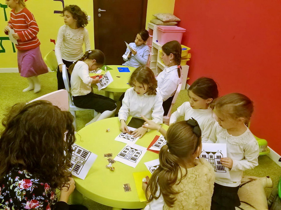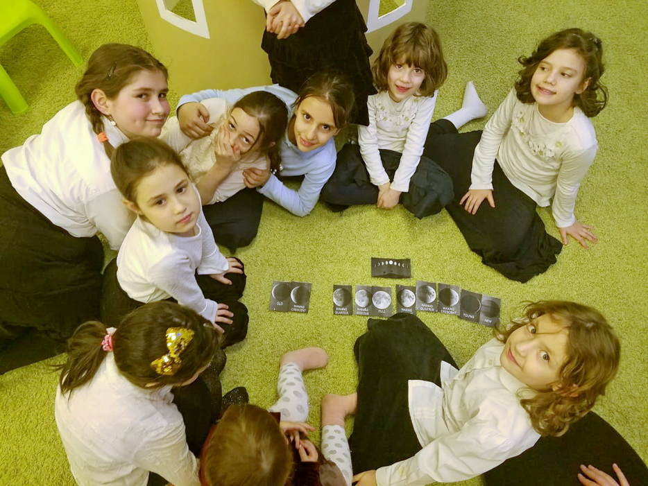 Вместе с Фридой Чупиной, дети разучили нигун на Рош Ходеш Кислев; произнесли псуким; посмотрели кукольное представление, подготовленное Дворой Симой Романовской и Хаей Мушкой Чупиной; делали аппликации, изображающие здание «Севен Севенти», в двери которой виден Ребе; а кроме того, изучали фазы луны, тоже с определенным смыслом, связанным с месяцем Кислев. «Мы говорили, что Ребе подобен луне, иногда его видно, иногда – нет, но он всегда с нами, как луна, которая никуда не исчезает, – рассказала нашему сайту Ривка Бородкина, – мы учили про фазы луны и дети должны были в конце занятия самостоятельно расположить фазы луны в правильном порядке».