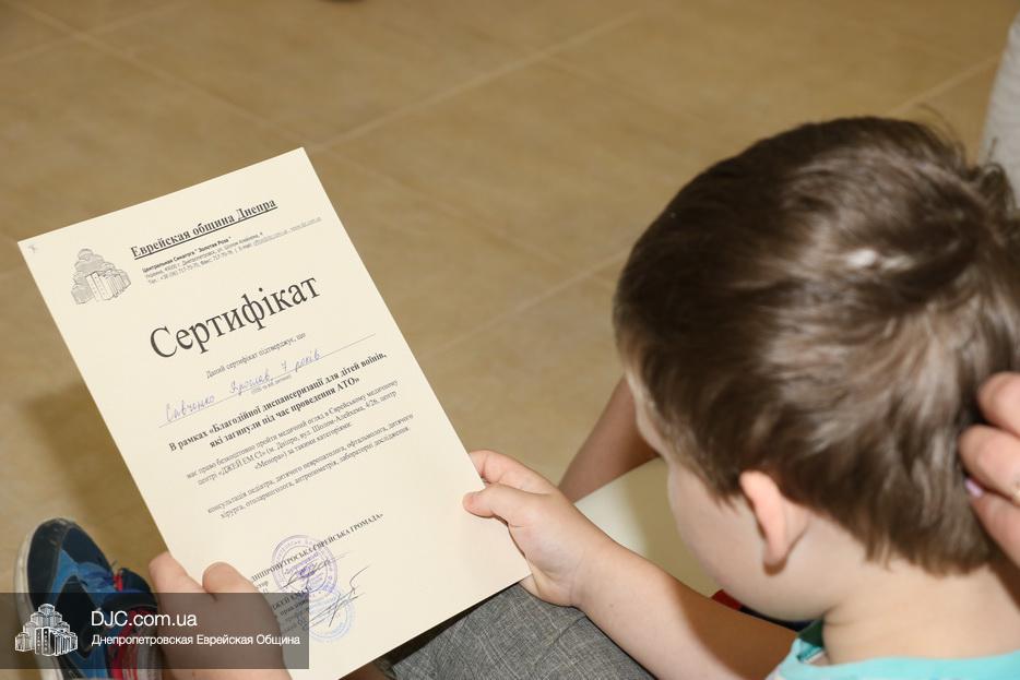 В рамках «Благодійної диспансеризації для дітей воїнів, які загинули під час проведення АТО», с такой просьбой обратилась «Региональная ассоциация пациентов», которую поддержал Департамент экономического развития ДнепрОГА. По их просьбе Еврейской общиной Днепра и JMC было выписано необходимое количество сертификатов на бесплатное медицинское обследование, включая сдачу анализов и посещение специалистов.