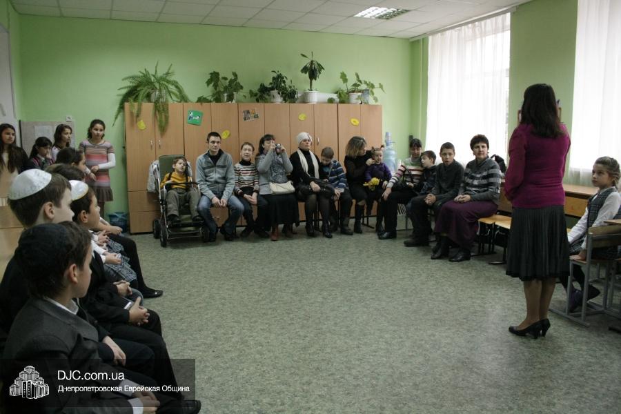 В продолжение мероприятий Декады «Возможности ограничены, способности безграничны», воспитанники Образовательно-Ресурсного Центра «Маале» для детей, страдающих тяжелыми хроническими заболеваниями, и их родители посетили 4-а класс еврейской школы Днепропетровска «Ор Авнер Хабад-Любавич» им. Леви-Ицхака Шнеерсона.