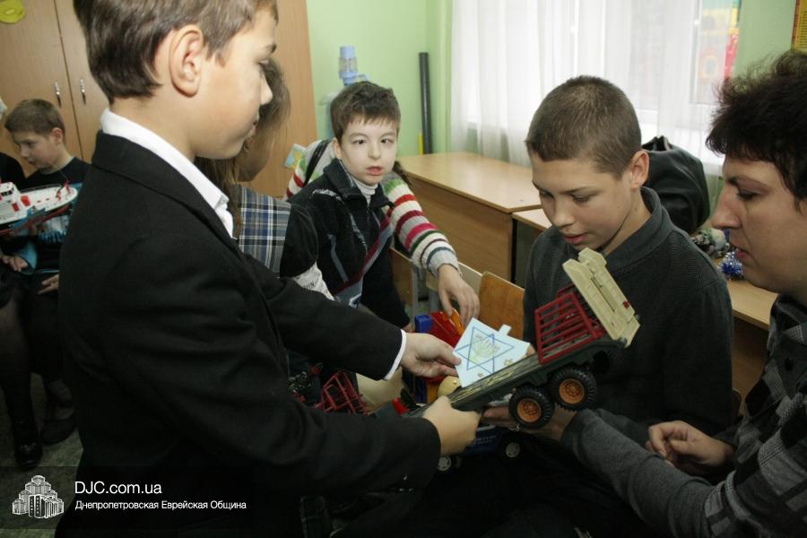 Было еще много игр и развивающих занятий, а в завершение гостям вручили подарки от их школьных друзей – хануке гелт и много игрушек, специально принесенных детьми из дома. Все воспитанники ОРЦ получили даже не по одному, а по целой охапке подарков, но, безусловно, самыми главными были искренние пожелания, как можно быстрее увидеться и продолжить дружеское общение.