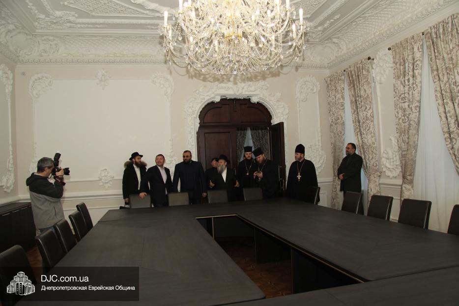 Диалог дружбы и взаимопонимания между конфессиями проходит на самых разных уровнях – встречаются священники и активисты, проходят круглые столы и конференции, регулярно проходят встречи иерархов и руководителей конфессий. Так, важным этапом в этом процессе стала встреча Главного раввина Днепра и региона Шмуэля Каминецкого с Правящим архиереем Епископом Днепропетровским и Криворожским Симеоном. Раввин Каминецкий посетил недавно открытое здание епархиального управления Украинской Православной Церкви Киевского Патриархата на улице Сичевых стрельцов, осмотрел строительство нового Храма «Нечаянной радости» и тепло поздравил братскую конфессию с новосельем и прекрасной реконструкцией одного из красивейших исторических зданий Днепра, которое теперь получило новую жизнь.