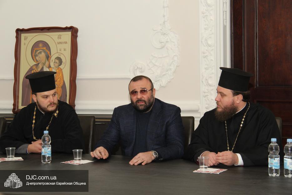 Руководитель отдела патриотического воспитания и капеланской службы епархии, протоиерей Дмитрий Поворотный рассказал о реабилитационных программах для детей из зоны АТО, об их визитах в Днепр. «Мы всегда им говорим о важности сохранения дружбы между всеми этническими группами и общинами многонационального народа Украины, мы бы хотели, чтобы в программу их посещения Днепра входило и знакомство с еврейской общиной, посещение «Меноры» и еврейского Музея», – отметил он. Раввин Каминецкий поддержал эту инициативу, и подчеркнул, что община и «Менора» с радостью примут и проведут экскурсии для детей, из зоны конфликта.